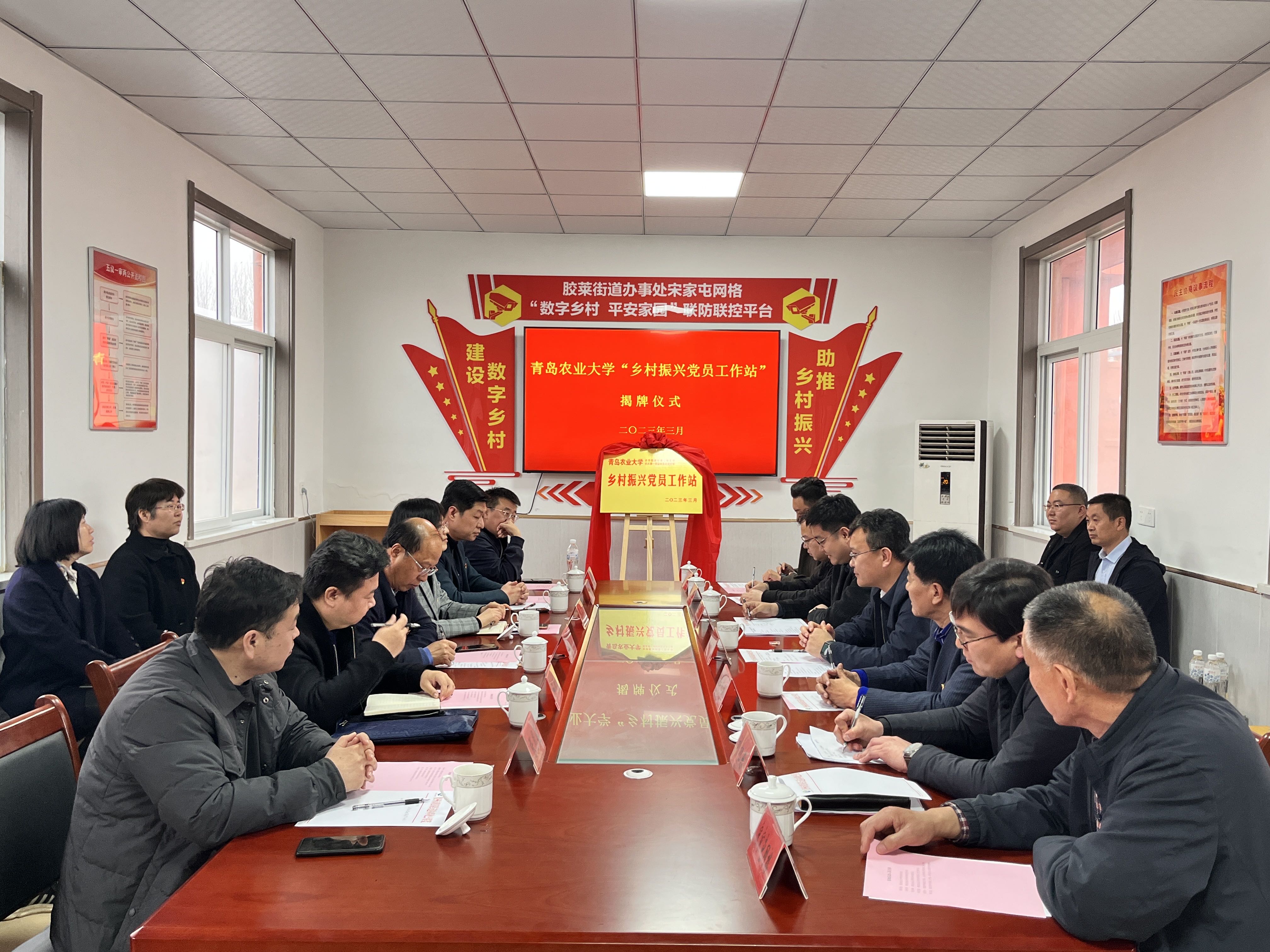 为进一步提升基层党建工作水平,实现校地党建资源共建共享,3月22日,beat365中文唯一官网机关一财务处党支部书记、处长蒋家慧,beat365中文唯一官网党委书记马伟萍,财务处副处长孙显峰,beat365中文唯一官网第二(教工)党支部书记张恩盈及部分师生代表一行赴胶莱街道宋家屯参加“乡村振兴党员工作站”揭牌仪式。胶州市省派驻村第一书记和工作队队长张原生、刘文星,胶莱街道党工委书记刘井哲,党工委副书记刘旭东,胶莱乡村振兴工作队队长吴焕明、刘福临等一同参加仪式。仪式由胶莱街道党工委副书记刘旭东主持。