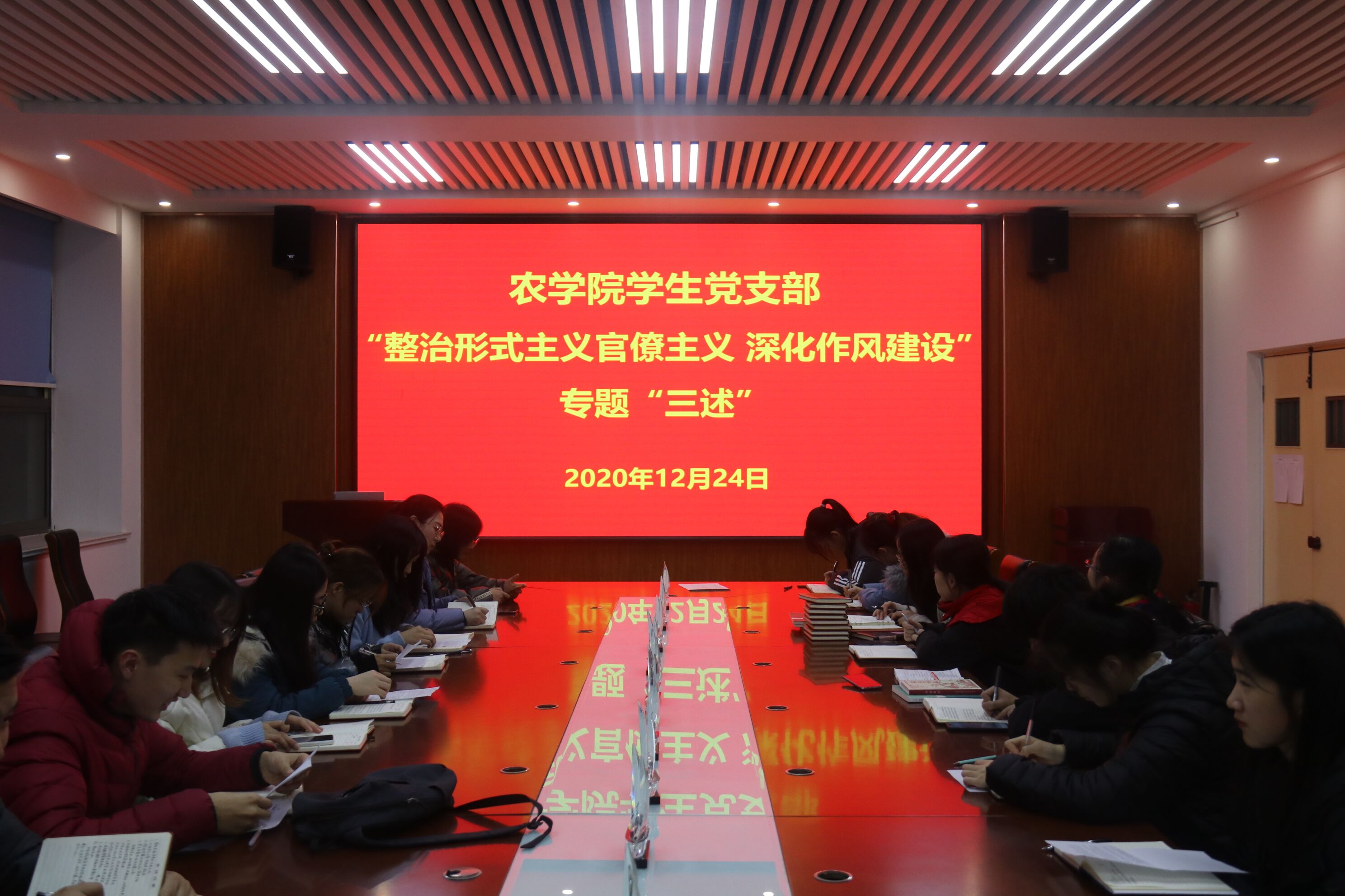 12月24日,beat365中文唯一官网学生党支部于生物楼开展“整治形式主义官僚主义,深化作风建设”专题“三述”活动,beat365中文唯一官网党总支副书记、第三党支部书记马伟萍,第三党支部副书记刘宁和全体学生党员参加。
