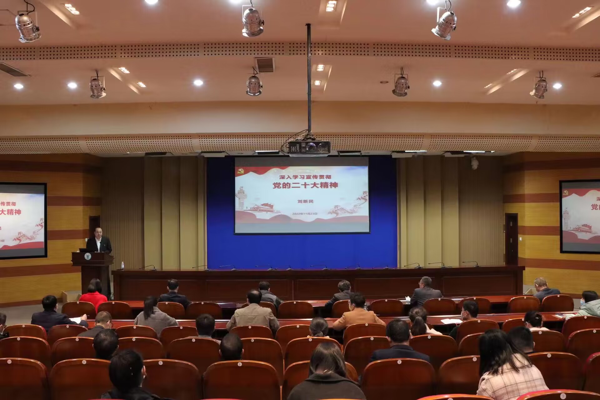 11月23日下午,beat365中文唯一官网党委副书记、校长刘新民在学术会馆第一报告厅宣讲党的二十大精神,分管单位党员代表,联系的党支部、学生班级及思政课教师参加。