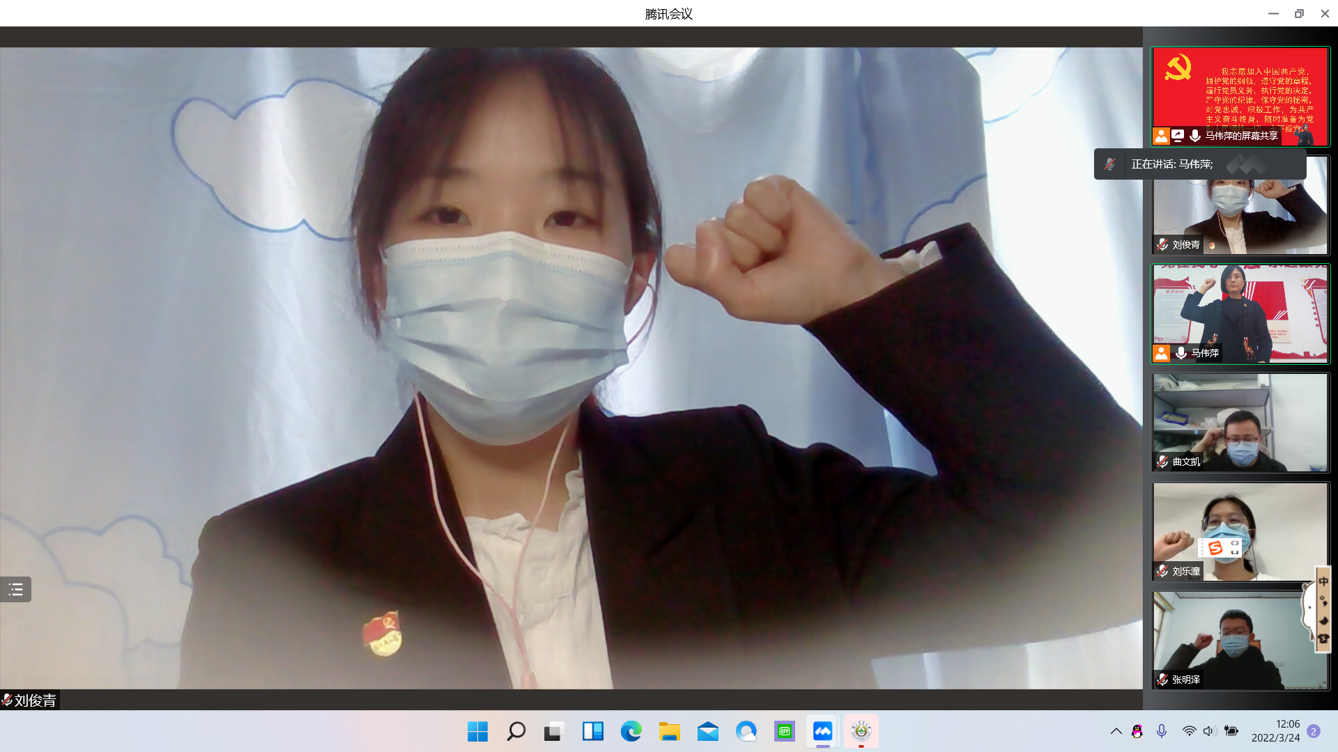 马伟萍以“我是党员我带头 疫情防控当先锋”为主题,与大家一起观看了学校战“疫”视频《微光》,重温了中共beat365中文唯一官网委员会组织部致各级党组织和广大共产党员的动员令,并结合当前严峻的疫情防控形势和亲身经历体会,讲述了留守校园的广大党员干部、师生员工参与疫情防控工作涌现出的感人故事和鲜活事例。最后,全体党员举起右拳,重温入党誓词。