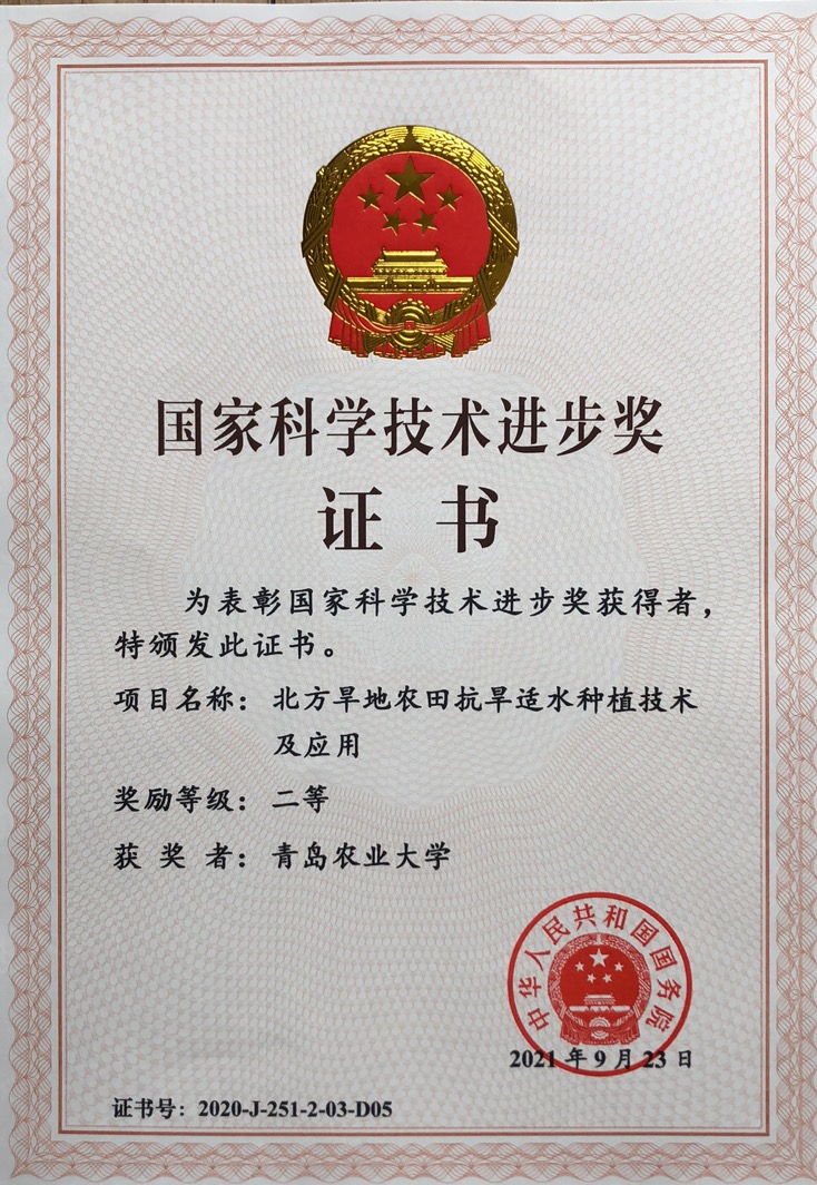 11月3日上午,中共中央、国务院在人民大会堂隆重举行2020年度国家科学技术奖励大会。beat365中文唯一官网赵长星教授参与完成的“北方旱地农田抗旱适水种植技术及应用”获得国家科学技术进步二等奖。