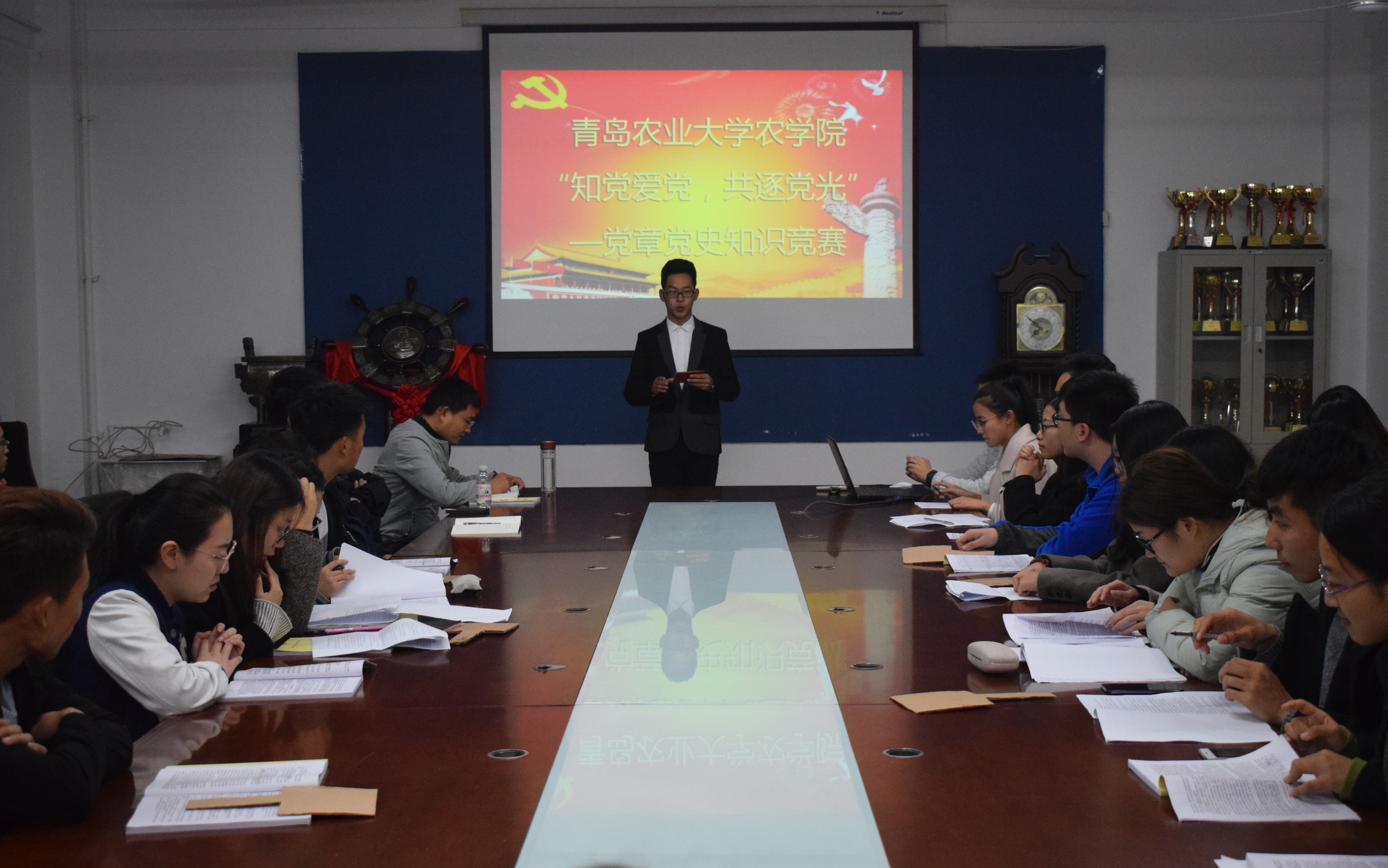 为进一步学习宣传贯彻十九大精神,11月10日,beat365中文唯一官网学生支部在生物楼N区举办“知党爱党,共逐党光”党章党史知识竞赛。学院党总支第二支部(教工)书记张恩盈、第三支部(学生)书记姜涛、第四支部(学生)书记谷元兴以及班主任代表王伟龙出席,beat365中文唯一官网全体学生党员和第21期入党积极分子参加。