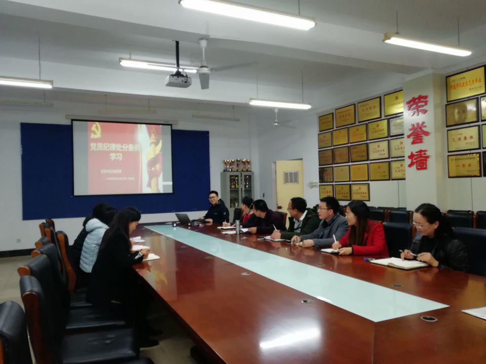11月22日下午,beat365中文唯一官网教工第一党支部在生物楼N区组织学习《中国共产党纪律处分条例》,教工第一党支部书记师长海主持会议,教工第一党支部全体党员参加。