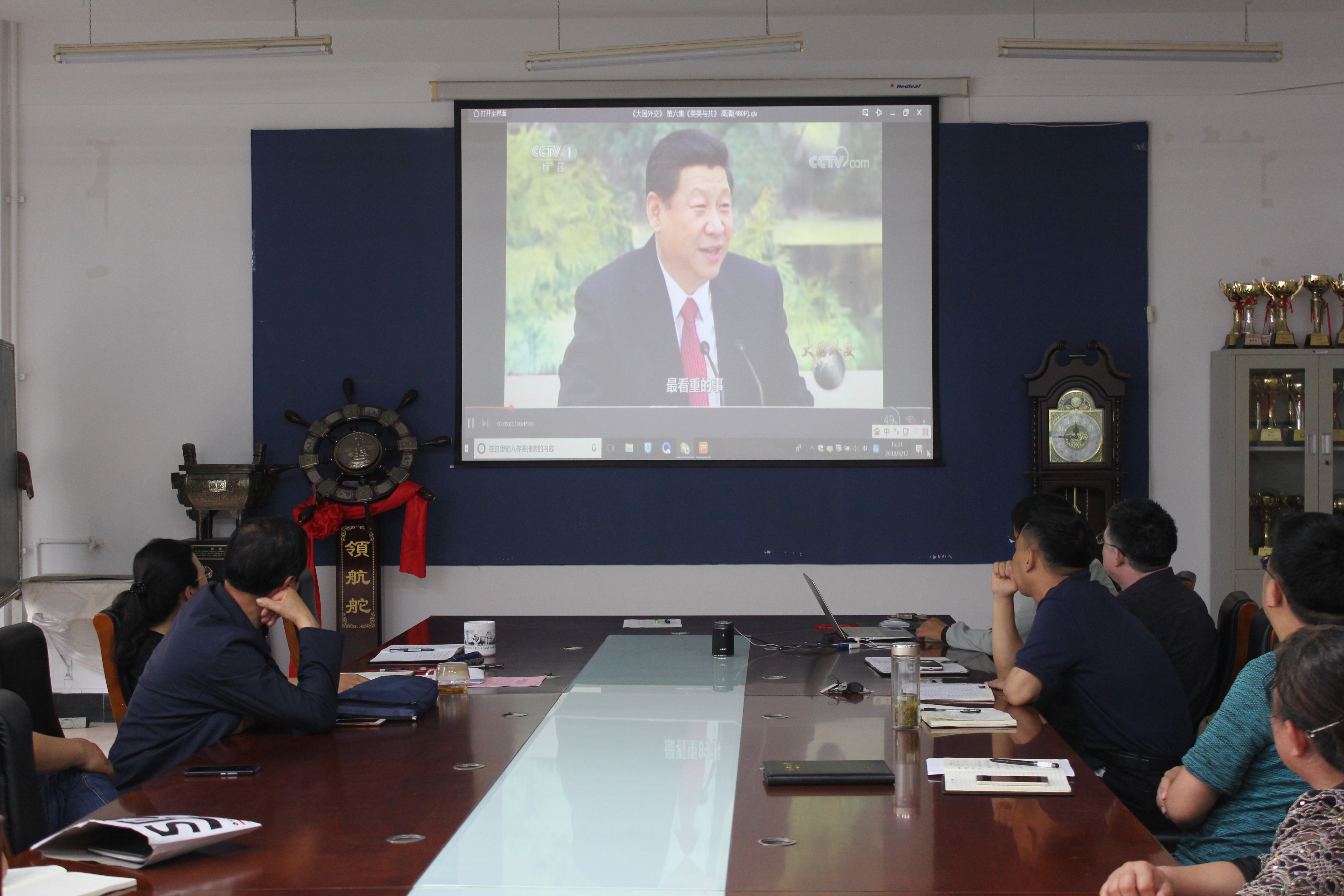 会议开始,张玉梅对往期学习内容进行了简单回顾,并对此次学习会的目的进行了强调。带领全体教职工集中观看纪录片《大国外交》第六集《美美与共》。该影片记录了十八大以来习近平总书记到不同国家、地区的真实访问经历和外交故事,展现出总书记在国际舞台上的领袖风采和气质魅力。在元首外交的有力引领之下,中国特色大国外交呈现出新的格局和气派,中国的“软实力”和国际话语权日益提升,中国开放、包容、自信的负责任大国形象日益鲜明。整个影片以事实说话,为全体教职工学习政治理论提供了生动的教材。观看结束后,部分教工根据此次学习内容发表了自己的意见和感想。