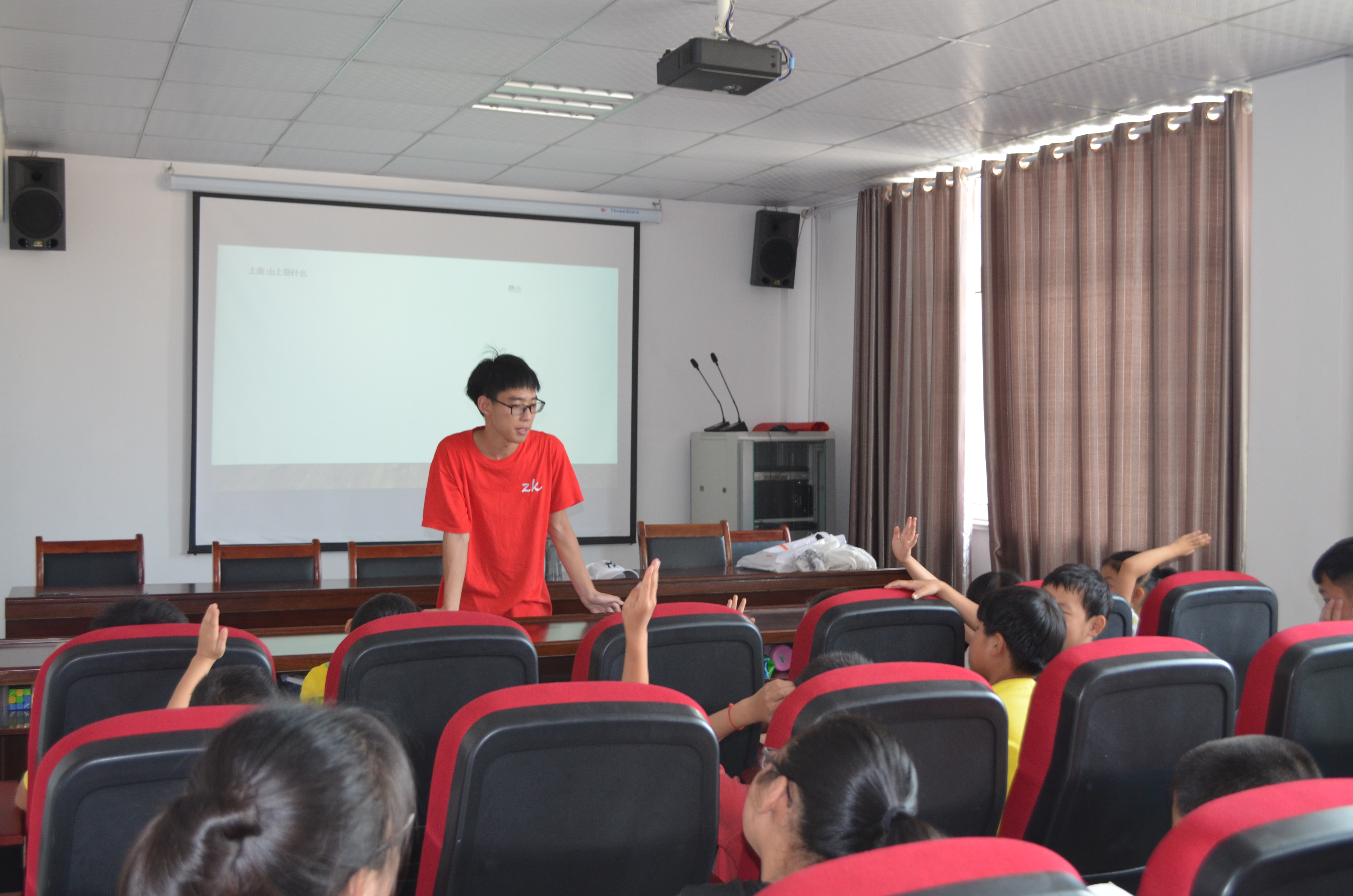 7月15日上午,唐新广为小朋友们开展“认识世界”小课堂。为了提高孩子们上课的主动性和积极性,唐新广通过生动诙谐的语言和灵动的动画带领小朋友们进入科学的世界,孩子们被奇妙的世界紧紧吸引,课堂上响起了此起彼伏的欢呼声。最后,他要求小朋友们画出自己对世界的理解及想象。孩子们的想象力再一次震撼了实践队员。