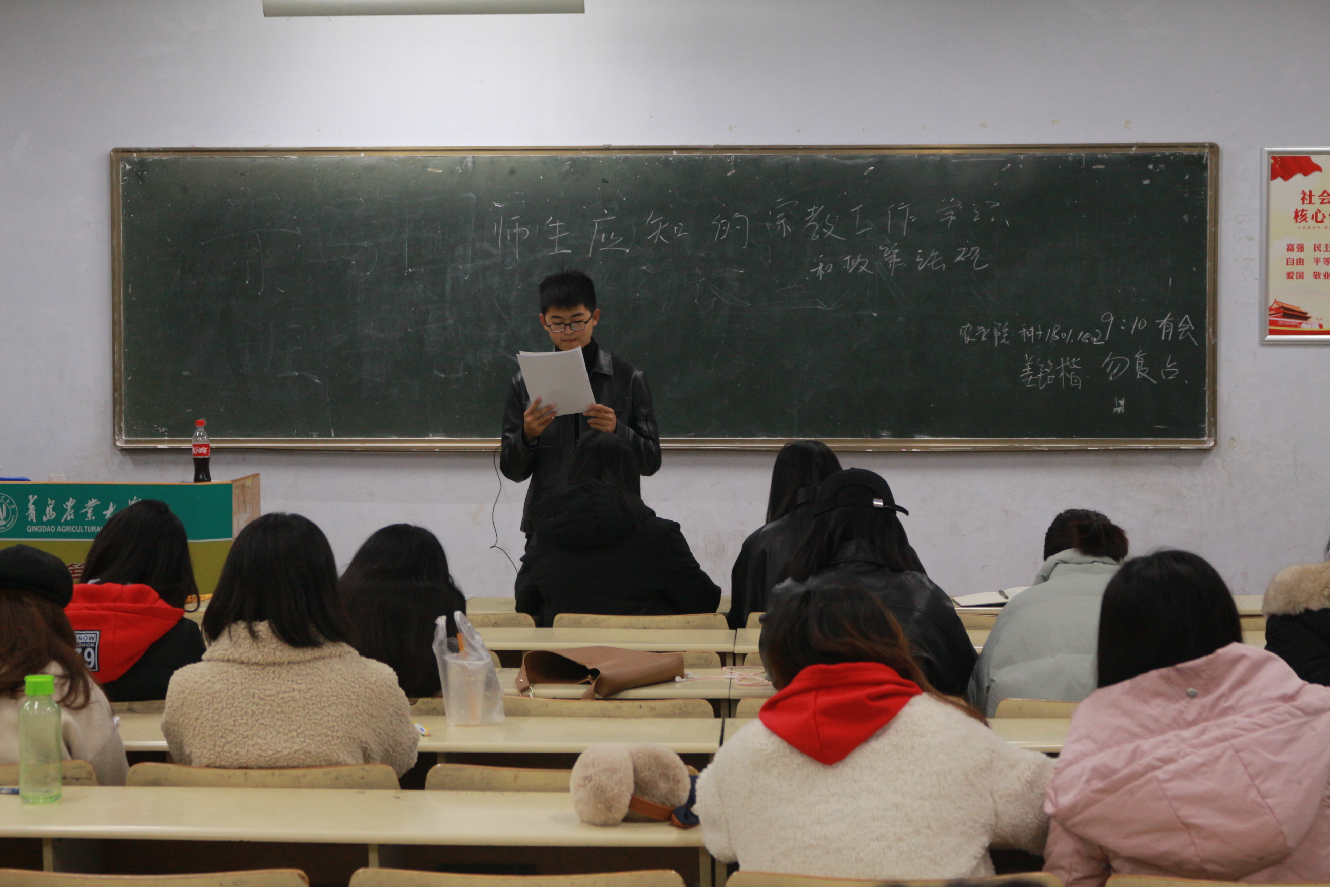 12月1日,beat365中文唯一官网在教学区开展“师生应知的宗教工作常识”主题团课,2018、2019级全体同学参加。
