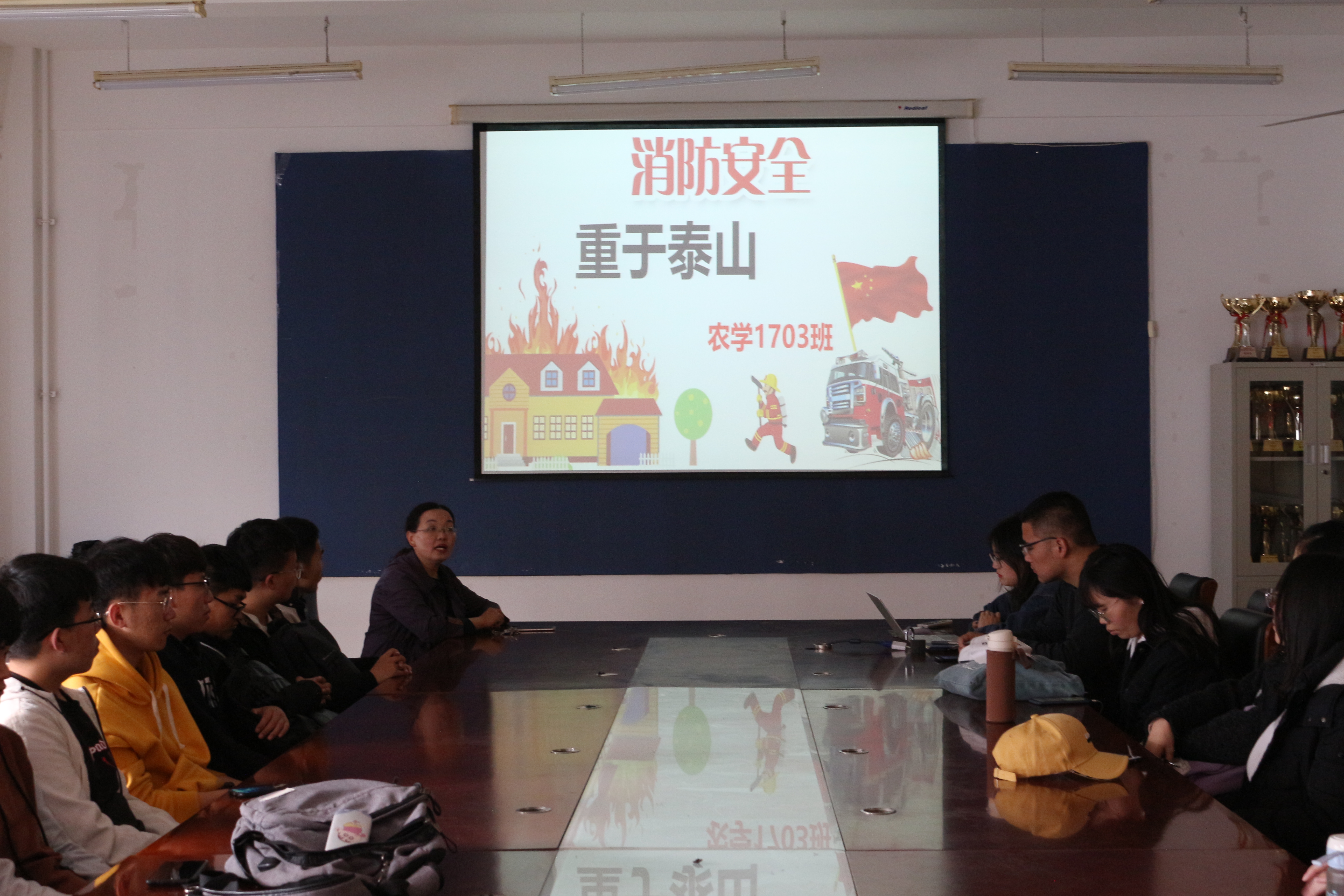 为提高同学们的消防安全防范意识,4月16日,农学1703班于生物楼N区开展“消防安全,重于泰山”主题班会,班主任王维华出席此次会议,会议由刘燕主持,农学1703班全体同学积极参加。