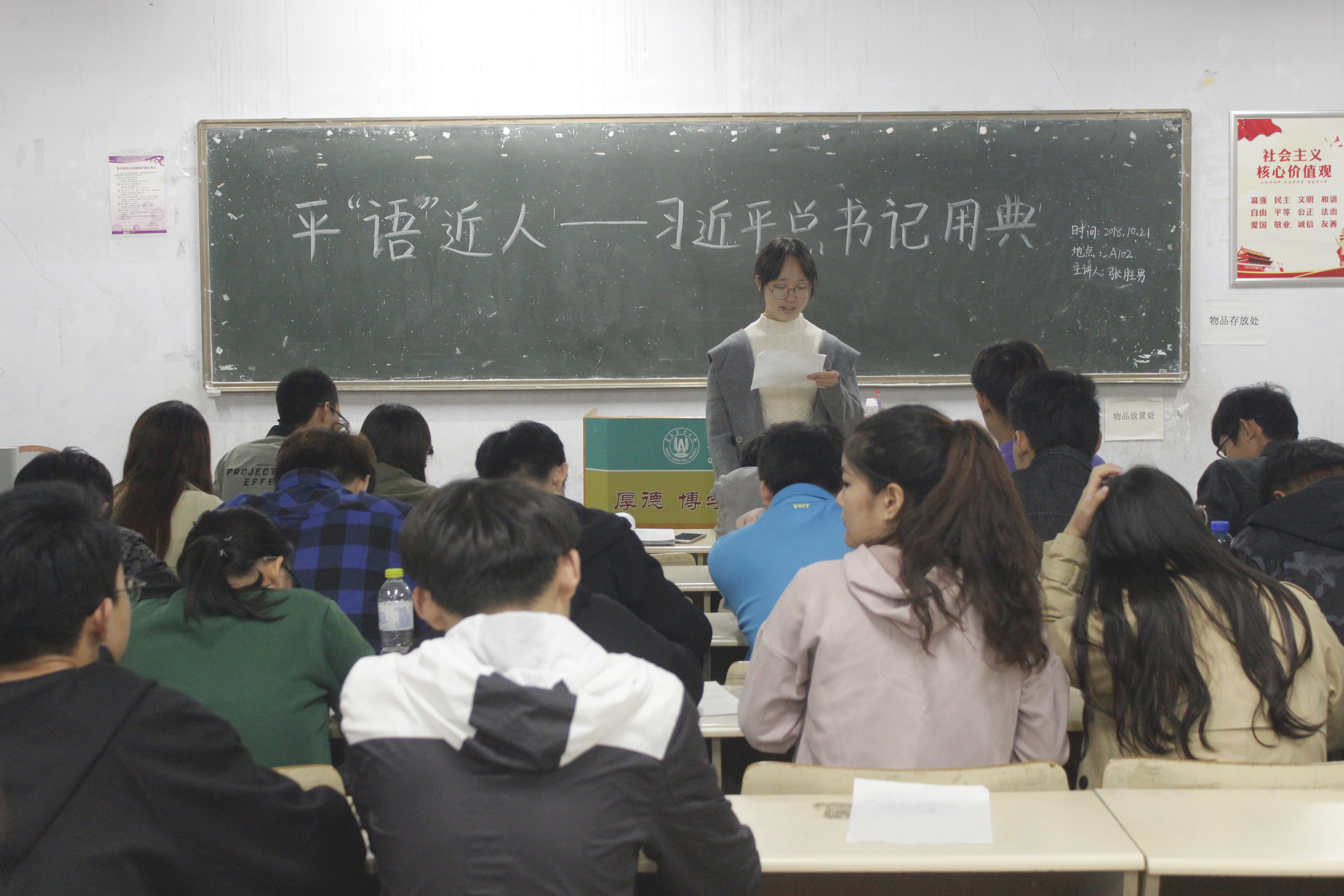 为积极响应团中央号召,切实开展《平“语”近人——习近平总书记用典》教育实践,10月21日,beat365中文唯一官网于教学区开展“学习《平‘语’近人——习近平总书记用典》解说词”为主题的团课教育。beat365中文唯一官网2017级、2018级学生积极参加。