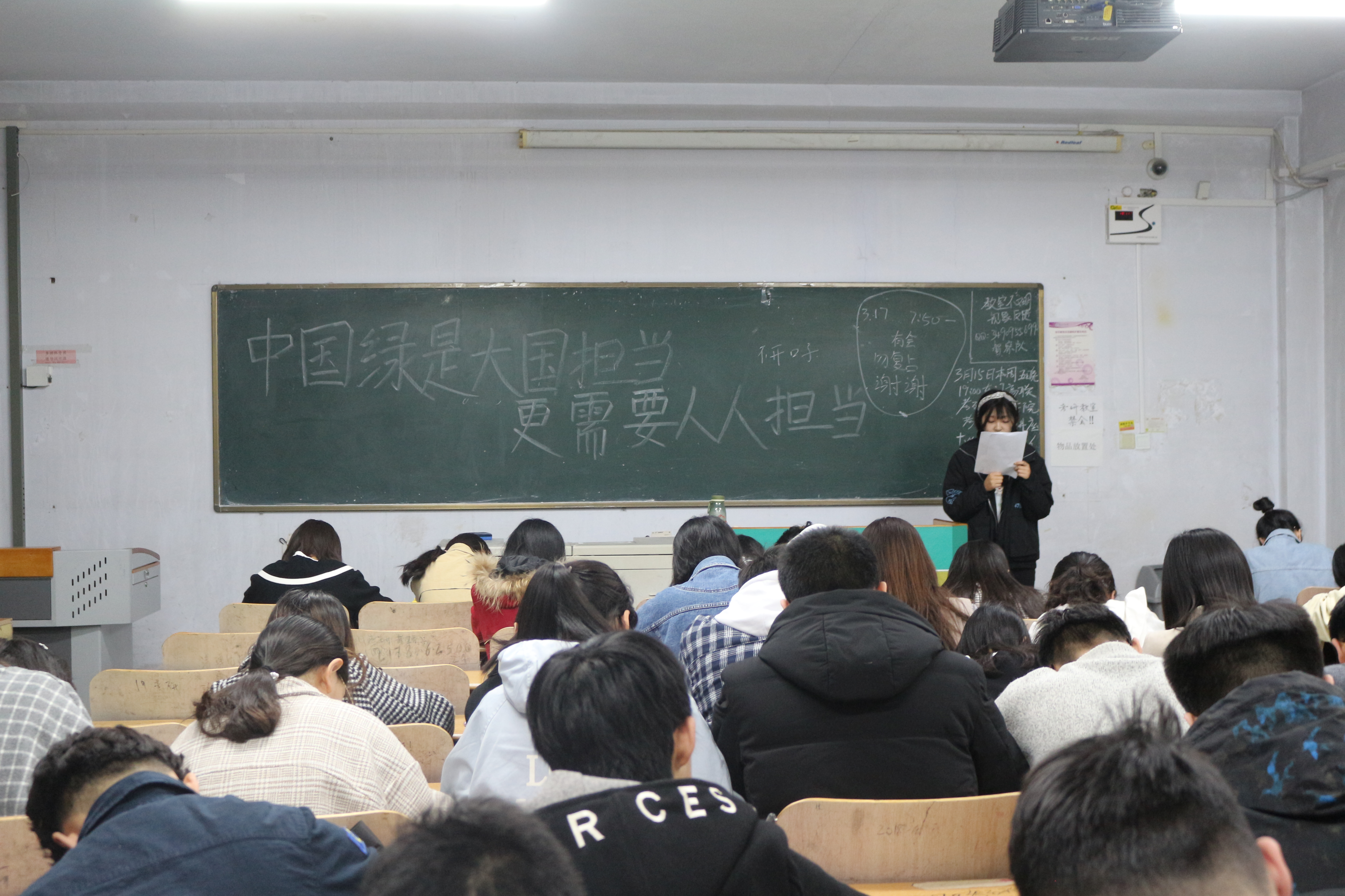 为增强同学们的环保意识和担当意识,3月17日,beat365中文唯一官网于教学区开展“中国绿是大国担当,更需要人人担当”主题团课学习,学院2017、2018级全体同学参加。
