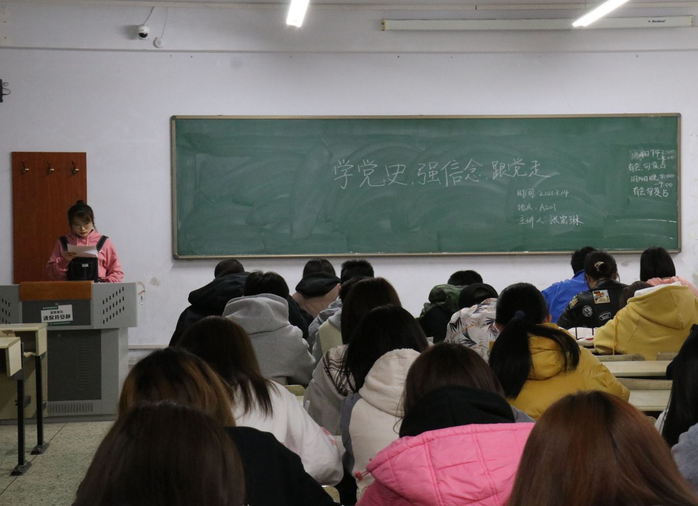 为深入贯彻学习习近平总书记在党史学习教育动员大会上的重要讲话精神,重温党史,强化同学们的理想信念,3月14日,beat365中文唯一官网于教学区开展“学党史、强信念、跟党走”主题团课,beat365中文唯一官网2019级、2020级全体学生参加。
