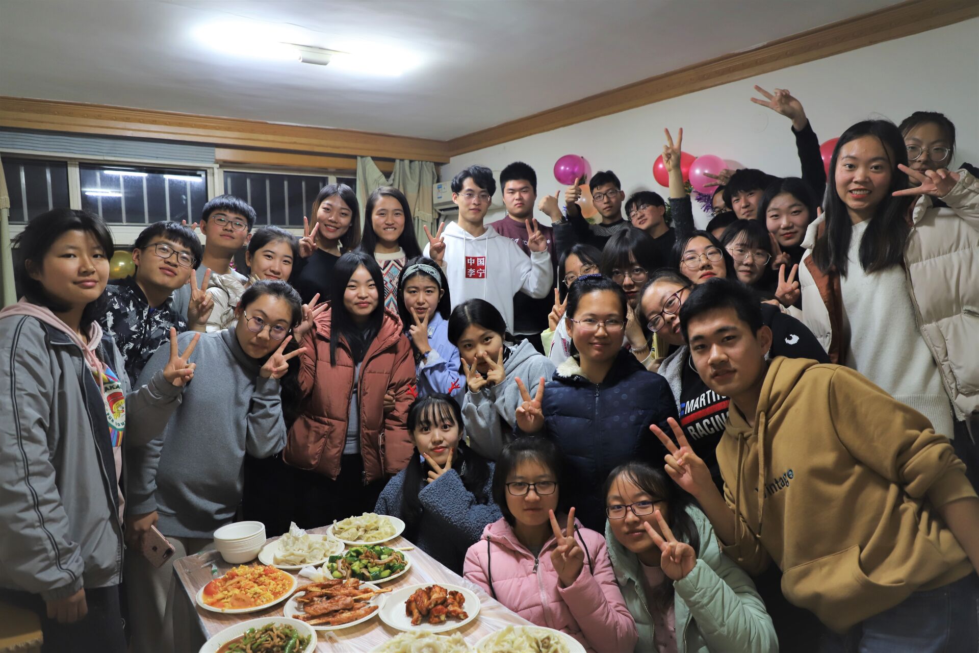 在活动举行前,同学们兴致勃勃,共同准备,前往超市购买蔬菜、水果、肉类等食品做准备工作,准备充足后,大家来到目的地进行包饺子活动,活动开始,班委们组织有序,同学们分工明确,各尽其长,很快全体同学就被划分成和面、擀皮、包饺子、炒菜四大阵营。女生们动作熟练,男同学更是不甘示弱,大家都忙得热火朝天。随着一盘盘热气腾腾、香气四溢的饺子端上桌,大家脸上的笑容越发洋溢,也许它的外形不算漂亮,味道不算顶尖,但它是大家亲手制作完成的,大家内心都是浓浓的满足。