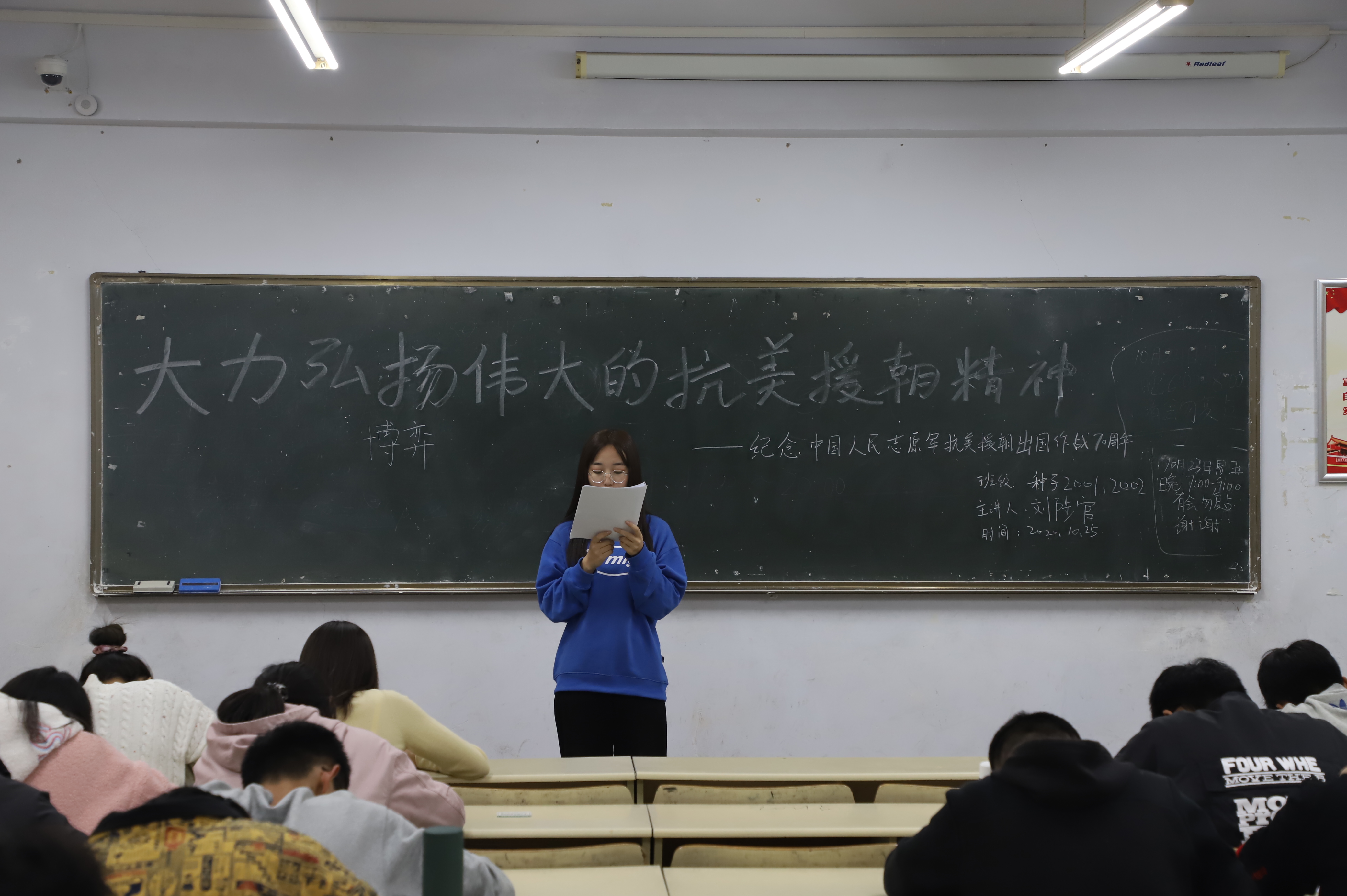 10月25日,beat365中文唯一官网于教学区开展“大力弘扬伟大的抗美援朝精神”主题团课,旨在纪念抗美援朝胜利70周年,铭记历史,致敬英雄,弘扬爱国主义精神。2019级、2020级全体学生积极参加。