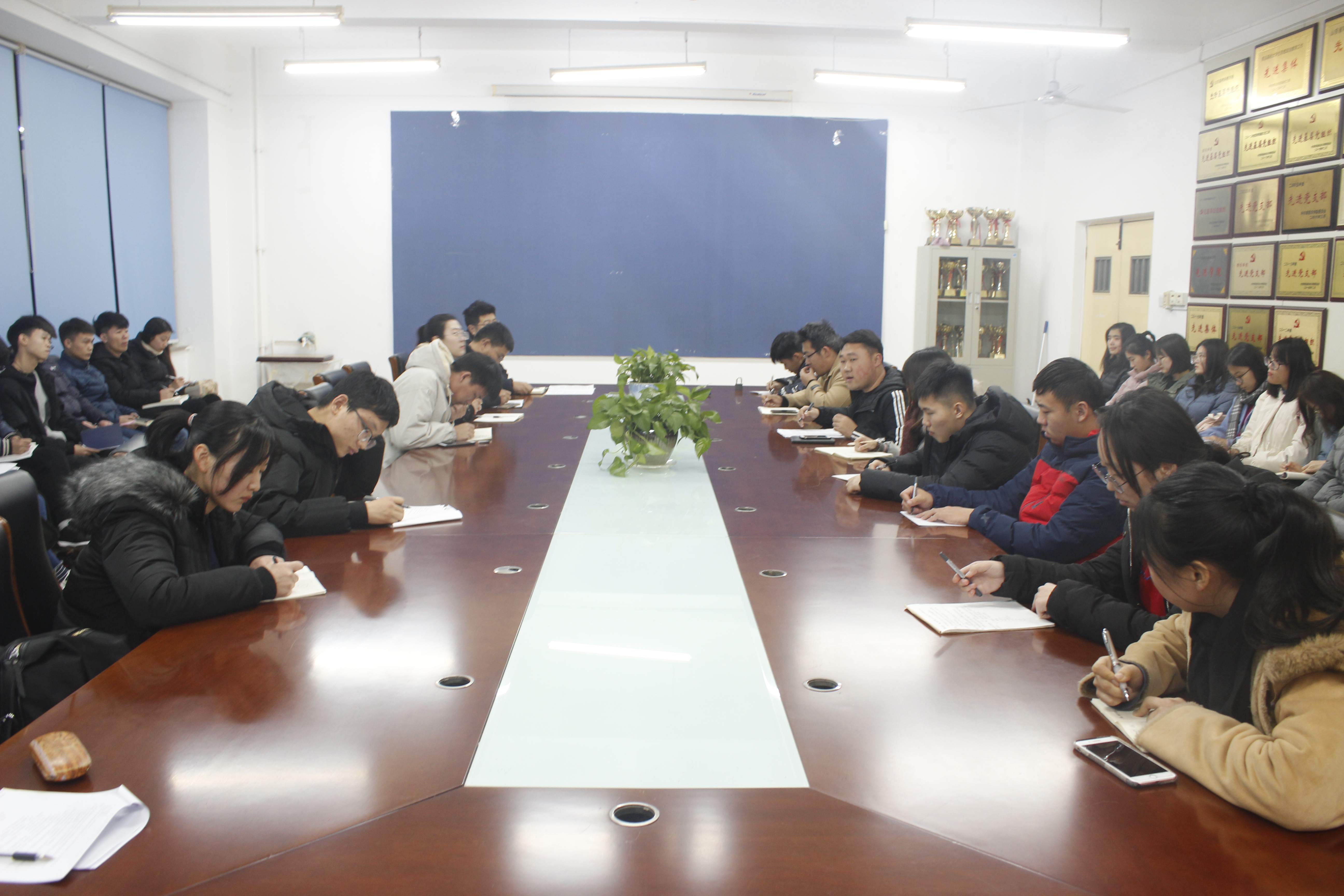 12月26日,beat365中文唯一官网在生物楼N区召开班长书记例会,学院团委书记姜涛,辅导员谷元兴、刘宁及全体班长书记出席会议。