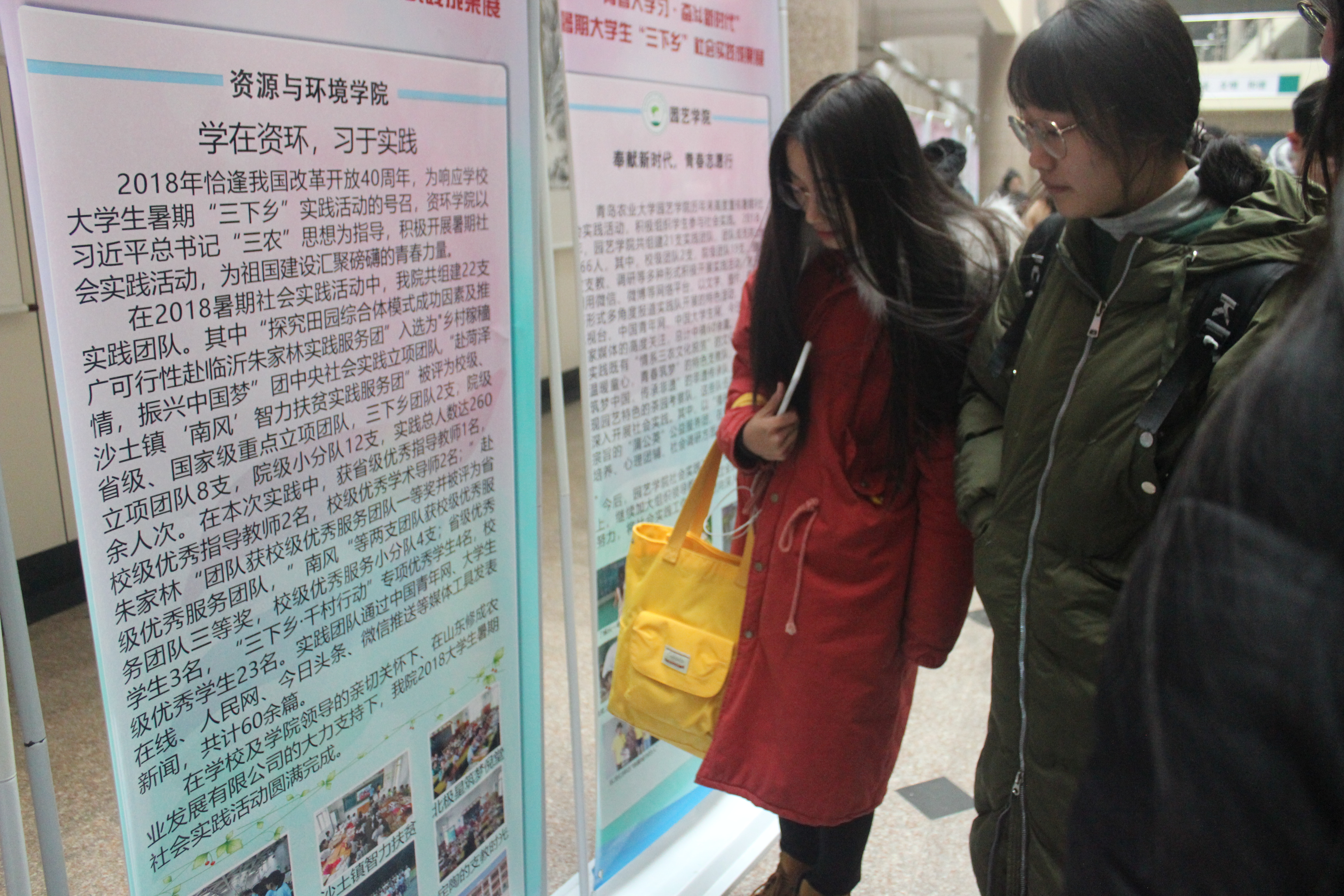 为增强学生社会服务意识,培养学生的创新实践能力,12月13日,在beat365中文唯一官网团委的带领下,学院师生代表到教学区A区大厅对暑期实践成果展进行参观交流。