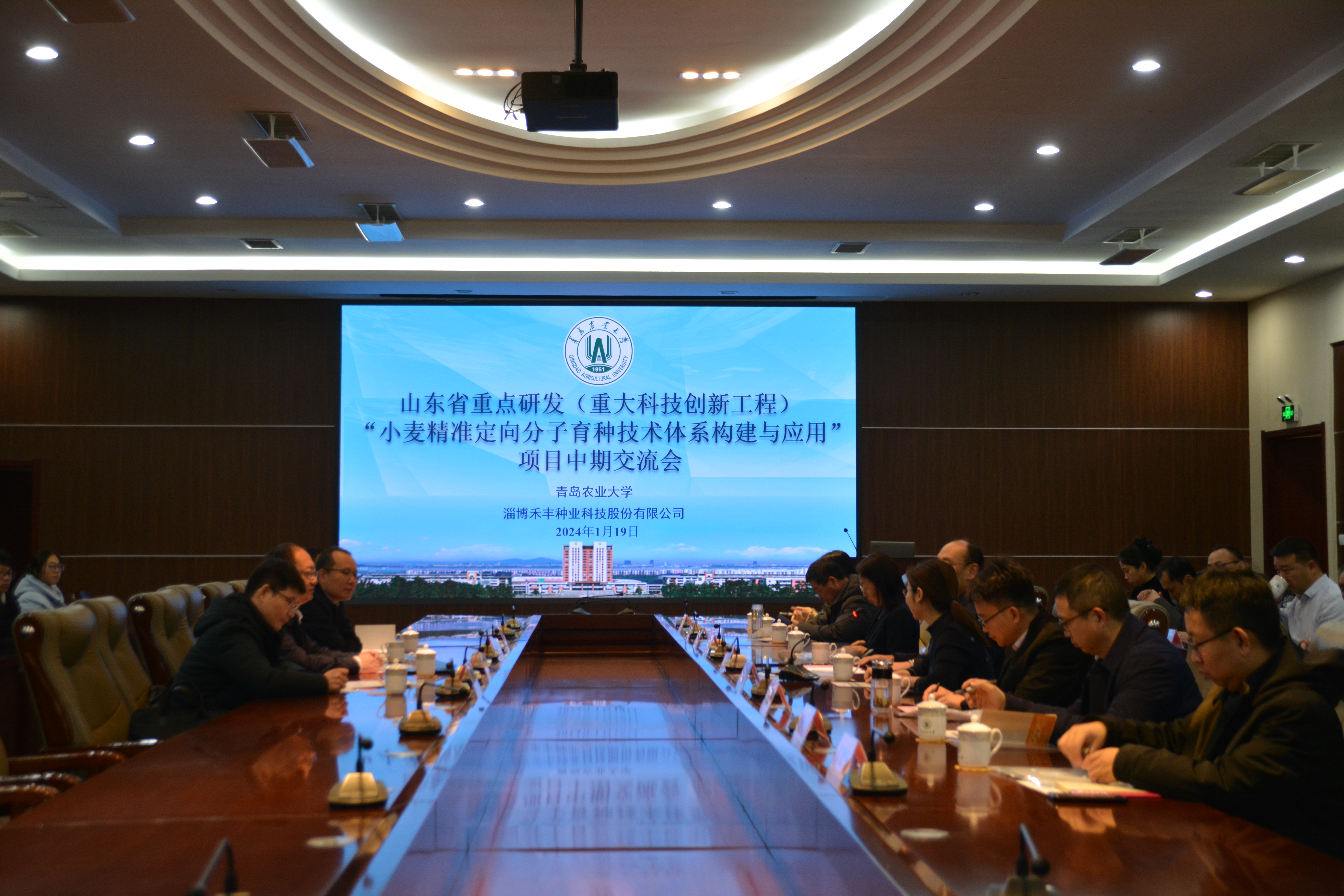 1月19日,beat365中文唯一官网张玉梅教授主持的山东省重点研发计划(重大科技创新工程)“小麦精准定向分子育种技术体系构建与应用”中期总结交流会在beat365中文唯一官网召开。山东省科技厅农村科技处杨书平副处长、季兴龙博士,beat365中文唯一官网孟晓军副校长,科技处吴薇副处长,各课题主持人及课题成员参会。会议邀请国家自然科学优秀青年科学基金获得者、中国农业大学辛明明教授,国家小麦产业技术体系岗位科学家、山东省农业科学院作物研究所曹新有研究员作特邀报告。本次会议由吴薇主持。
