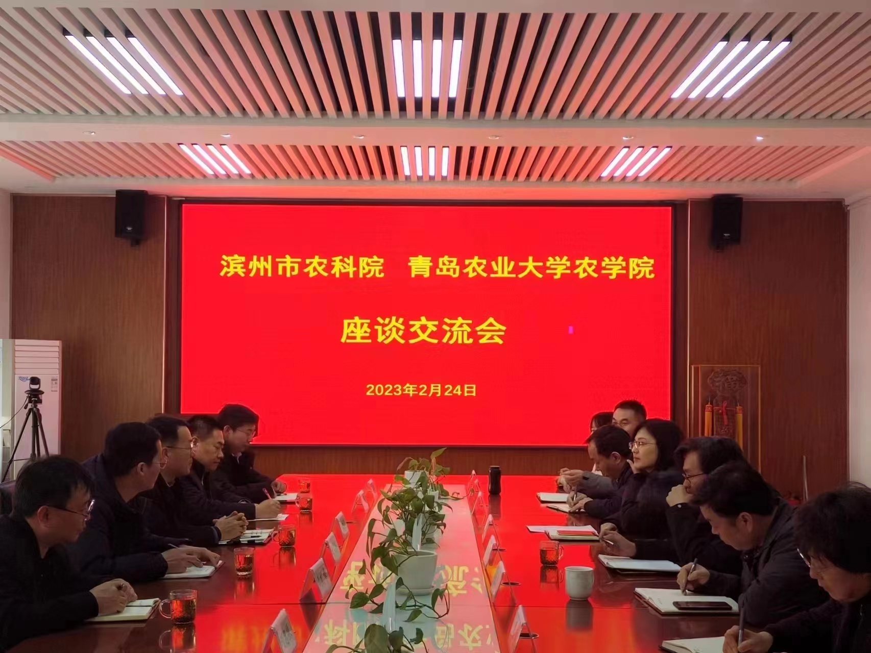 2月24日,滨州市农科院党支部书记刘树泽、副院长王子强、滨州市农业农村局科长任增凯等一行到访beat365中文唯一官网,双方在beat365中文唯一官网会议室进行了座谈交流,beat365中文唯一官网党委书记马伟萍、副院长刘义国、赵长星、张恩盈、教师代表刘家斌、姜雯、郭卫卫参与本次座谈交流会。会议由副院长刘义国主持。