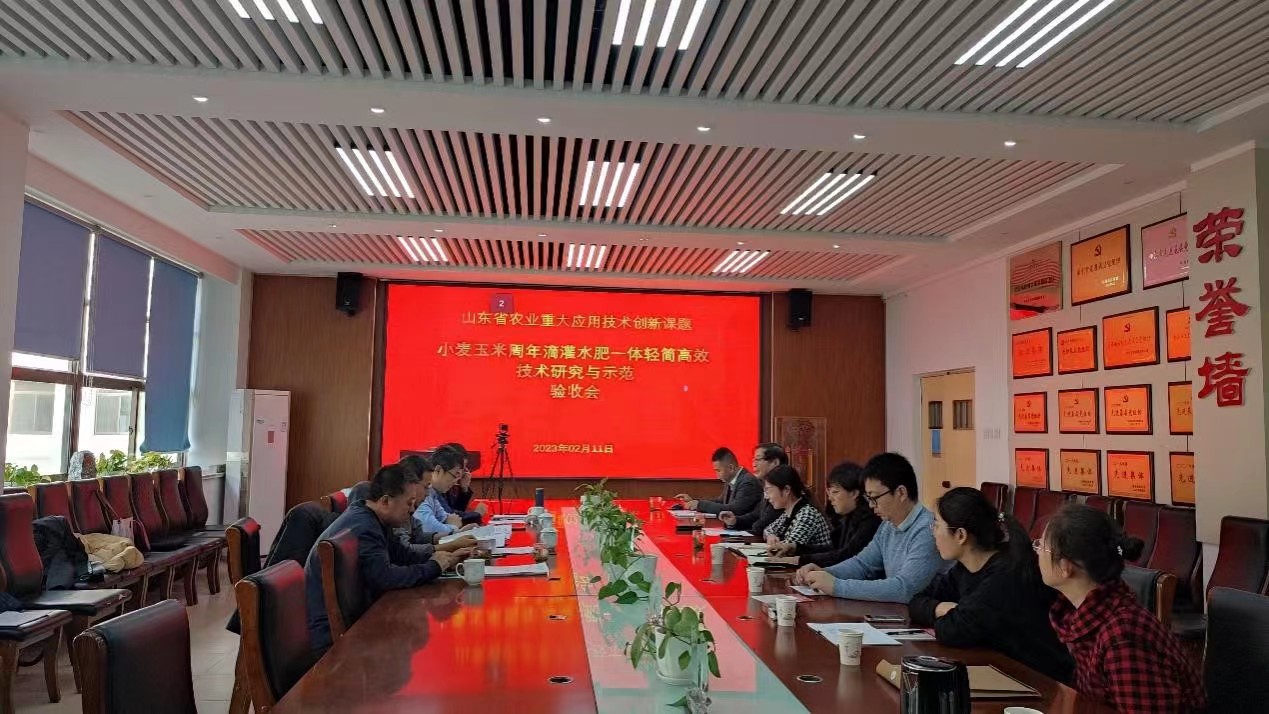 2月11日,受山东省农业农村厅委托,由全国农技中心粮食处处长鄂文弟、德州市农科院院长李宗新等5人组成的验收专家组,对beat365中文唯一官网承担的山东省农业重大应用技术创新项目“小麦玉米周年滴灌水肥一体轻简高效技术研究与示范(SD2019ZZ003)”进行了验收评审。验收会由科技处副处长吴薇主持,beat365中文唯一官网院长马武军、项目主持人刘义国及项目组成员参加。