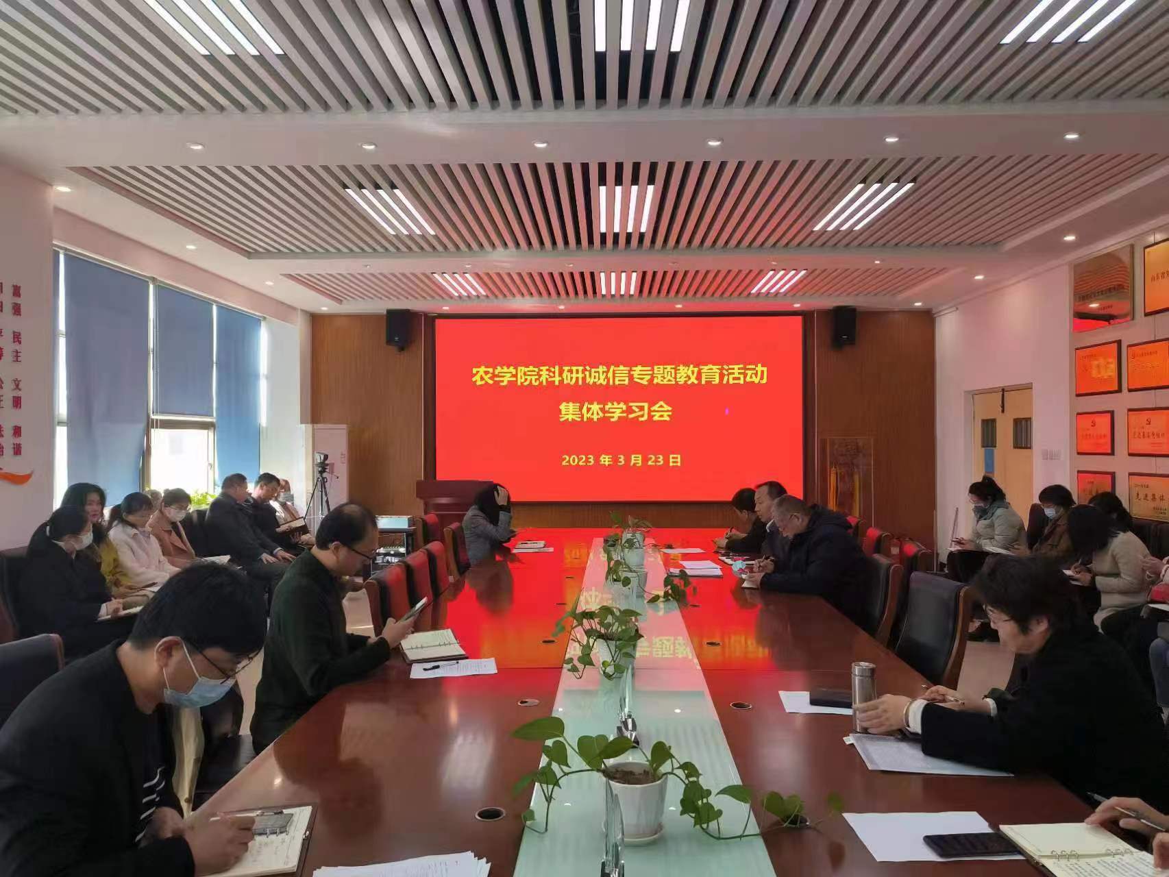 为进一步加强学院科研诚信建设,树立学术规范理念,3月23日,beat365中文唯一官网在生物楼举行科研诚信专题教育活动集体学习会,学院领导班子成员和教师参加,会议由副院长赵长星主持。