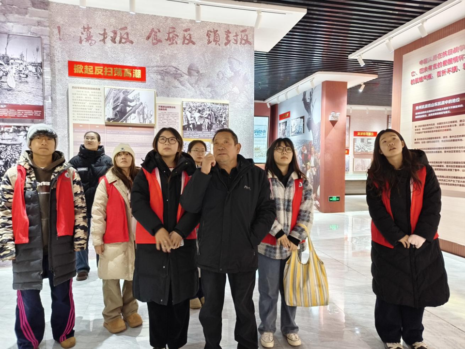 “农脉红魂 践悟初心”实践团赴潍坊青州,走进范公亭三贤祠、华东保育院旧址、益都赤涧支前粮站等地,聆听革命故事,感悟“最后一把米当军粮”的奉献精神,拜访退役军人王继元,在烈士祠前缅怀先烈,坚定“兴农报国”信念。临沂平邑“红脉铸魂·情暖沂蒙”实践团以“调研—服务—传承—赋能”为主线,走访慰问革命老兵、记录红色历史,在沂蒙热土上接受精神洗礼,厚植爱农情怀。