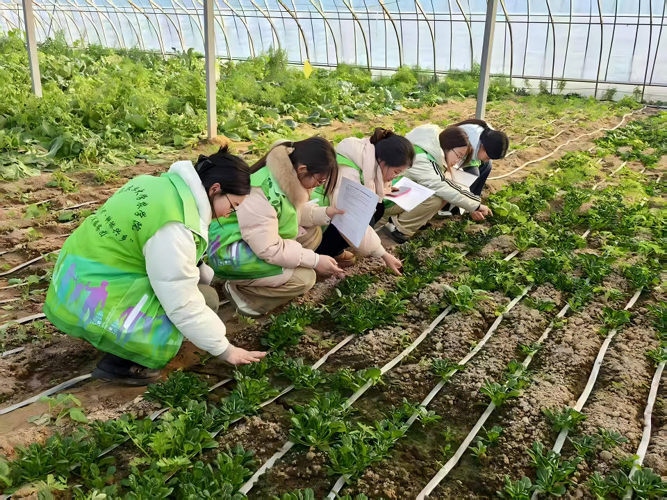 “银花电商·青耕乡村”实践团走进临沂平邑县,采取“产业调研+技能培训+实战演练”模式,深入康路全谷物面粉、牧兰生物医药等企业,调研农产品深加工与电商转化路径。“π聚青智·耕秾兴乡”实践团聚焦“葡萄+辣椒”双特色种植,学习水肥一体化、“三膜覆盖”等技术,走访百贝康食品、银香伟业等企业,调研农产品加工转化与市场对接经验。“‘玉’见数字,‘泉’心助农”实践团深入玉泉洼农业合作社,调研“党支部+合作社+园区+农户”利益联结机制,学习区块链溯源、智能种植床、十层立体栽培等前沿技术,感受科技赋能有机农业的生动实践。“黄河东阿红,兴农绿意融”实践团则聚焦黄河流域生态保护和高质量发展,调研嘉华油脂、豪达农业等企业,与农业农村局、黄河河务局座谈,深入黄河大鲤鱼养殖基地,全面了解特色养殖与乡村振兴实践经验。