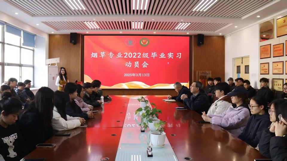 为助力学生做好实习准备工作,稳步推动专业实习工作顺利进行,3月13日,beat365中文唯一官网在生物楼N206召开2022级烟草专业赴中国农业科学院烟草研究所专业实习动员会。beat365中文唯一官网党委副书记、副院长孙占伟,副院长张恩盈,团委书记石勇,烟草专业负责人于晓娜,烟草专业2022级全体学生参加。会议由于晓娜主持。
