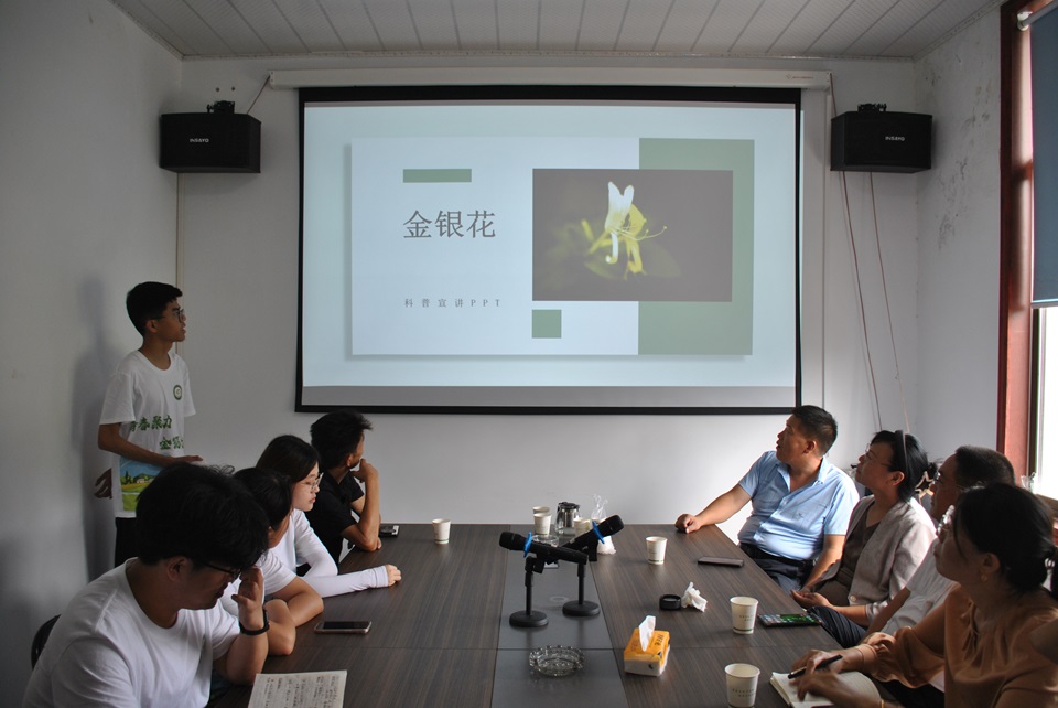 在合作社负责人刘金炜的引导下,实践团深入种植基地与深加工车间,实地察看了规模化、标准化的金银花等道地药材种植实况。据刘金炜介绍,该合作社依托三峡扶贫移民支扶工程成长,已成为行业标杆,不仅供销有机金银花、生产有机花茶,更是国内唯一承担金银花欧洲出口任务的合作社,产品超越药典标准。刘金炜表示,目前合作社面临私有化转集体化推进受阻、融资渠道较窄、人力成本攀升与产品售价偏低矛盾导致利润微薄等发展痛点,希望通过产学研融合破局,推动金银花产业振兴。团队成员认真记录,为后续助力产业发展积累一手资料。调研过程中,实践团开展了金银花深加工科普宣讲,围绕种植特性、产业价值及深加工方式方法为合作社成员带来专业知识,帮助系统提升认知,赋能产业发展。
