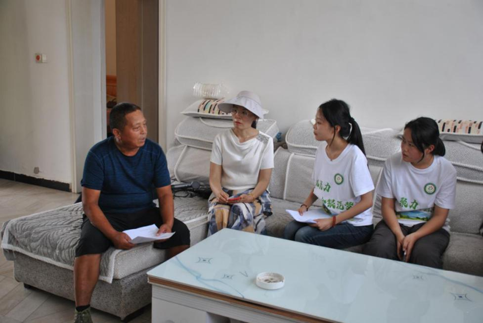 图为团队学生在郑城镇四合村农户家里进行走访调研。陈丹阳供图