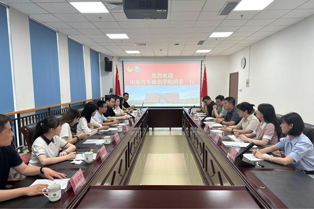 孟祥佳介绍了山东青年政治学院共青团工作的基本情况。双方就党建带团建、基层团组织建设、第二课堂成绩单制度、学生社团管理等工作进行了深入探讨。