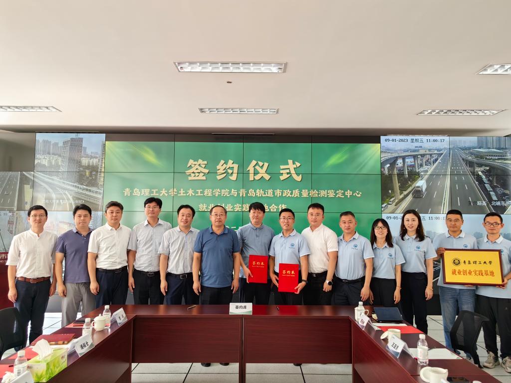 9月1日,土木工程学院赴青岛轨道市政城市物业公司举办校企座谈,启动就业创业实践基地平台揭牌仪式。学院教授曲成平、院长侯东帅及学院领导班子参加。青岛市政空间开发集团工程管理部部长陈际洲、城市物业公司纪检委员、工会主席赵峰、城市物业公司副总经理曲健等公司领导参加签约仪式。