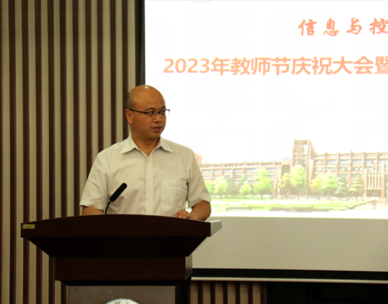 最后,院长田艳兵代表学院向全院广大教师和教育工作者致以节日的问候!向受到表彰的“先进集体”“先进个人”表示热烈的祝贺!向近5年荣休教师、为党的教育事业兢兢业业、无私奉献的老教师,全院教职工致以崇高的敬意!他充分肯定了学院全体教职工多年来的奋斗与付出。在专业认证和一流专业建设上取得了成绩;聚焦一流本科课程建设,扎实推进课程育人工作;科学分析,精准施策,完善政策保障,组建学术团队,凝练研究方向,不断提高学院学科建设水平和教师科研能力;将学科竞赛融入人才培养全过程,完善出台《学科竞赛管理办法》,搭建“金字塔型”大学生创新创业能力培养体系,打通学生在专业学习与实践训练之间的“最后一公里”,形成了教师学生广泛积极参与学科竞赛的良好氛围。