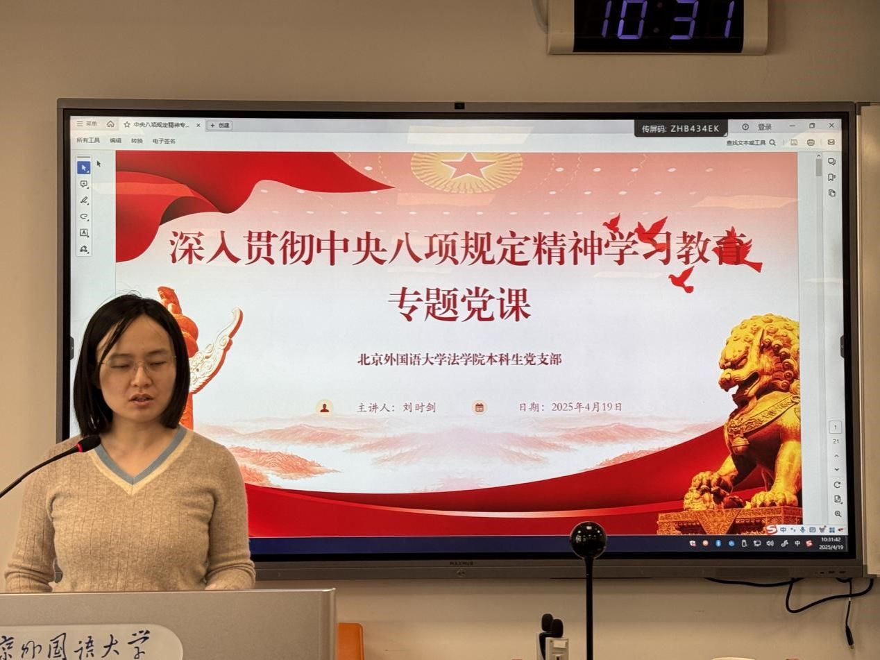 为引导党员树立正确的价值观,强化党员作风建设与廉洁自律意识,2025年4月19日上午,今年会官网本科生党支部于逸夫楼303教室组织开展了“深入贯彻中央八项规定精神学习教育”专题学习活动。本次党课由今年会官网辅导员、本科生党支部书记刘时剑同志主讲,支部党员、预备党员及发展对象参加学习。