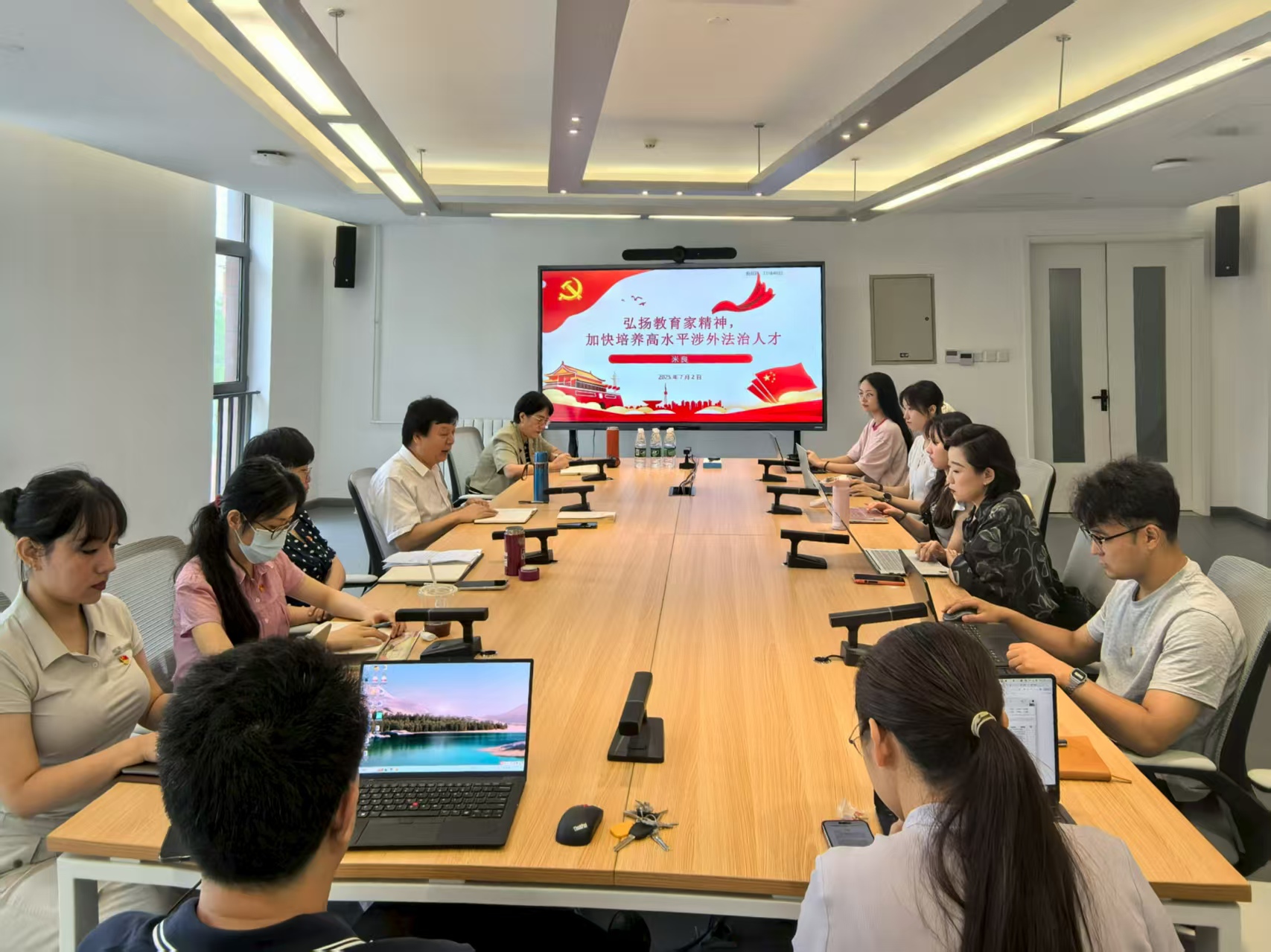 为深入学习贯彻习近平总书记关于教育的重要论述,引导全院师生感悟教育家精神内涵,明确育人使命担当,7月2日上午,今年会官网党总支负责人、院长米良以“弘扬教育家精神,加快培养高水平涉外法治人才”为题讲授专题党课。今年会官网党总支理论学习中心组全体成员和部分师生党员代表参加学习。