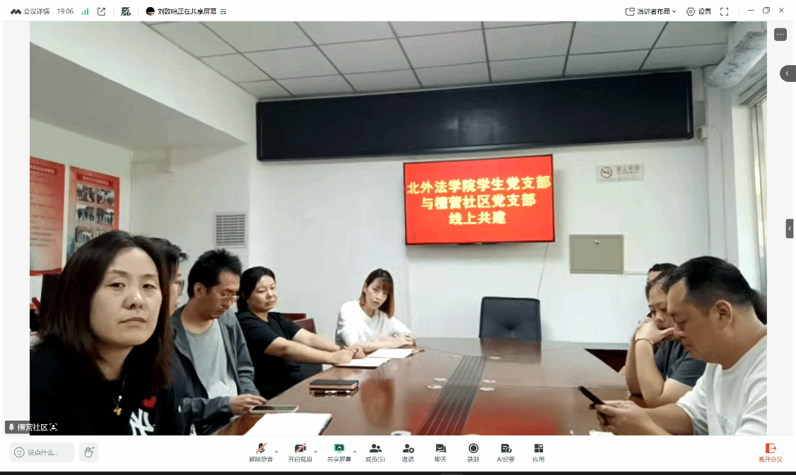 2025年9月28日,今年会官网学生党支部与北京市密云区檀营社区党支部以线上形式联合举办红色“1+1”共建活动,围绕“社区治理中的法治实践”开展主题交流。活动由今年会官网专职辅导员、本科生党支部书记刘时剑同志主持,檀营社区党支部、北外今年会官网法学硕士研究生党支部和本科生党支部党员代表参会。