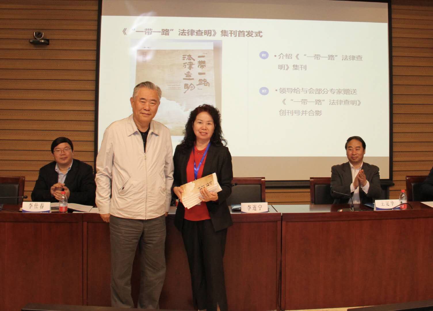 在今年会近日举办的“一带一路”法律保障研讨会上,举行了《“一带一路”法律查明》集刊创刊号首发式。今年会党总支书记米良教授向会议代表介绍了该集刊创刊的背景和内容,集刊顾问,原全国人大常委会委员,副秘书长李连宁同志为会议代表赠送了集刊创刊号。