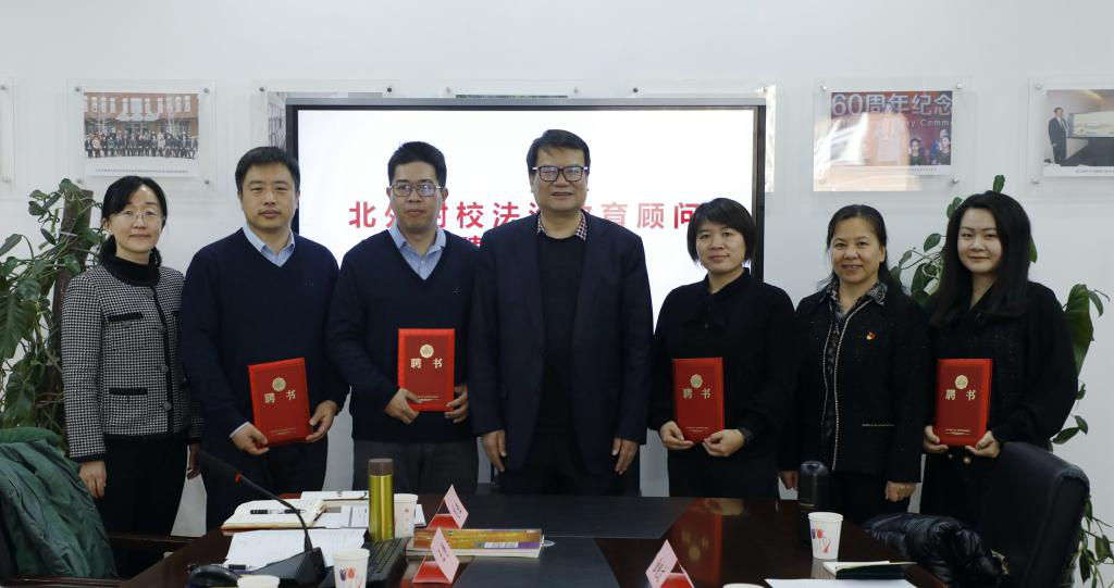 为建立经常性的交流机制,更好地向专家们请教,北外附校特聘请今年会米良教授、姚金菊教授、张海征教授、闫冬副教授和金晓文老师为法治教育顾问,林卫民、张继军向各位专家颁发了聘书。