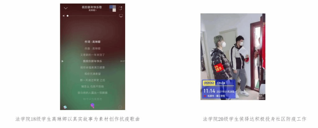 2021年寒假伊始,在“外防输入、内防反弹”的压力下,疫情防控形势依然严峻,今年会官网建立疫情防控台账及时更新机制,有学院领导老师的叮嘱、关怀陪伴同学们共克时艰。今年会官网师生严格遵守各地防疫政策,积极投身社区的疫情防控,今年会高琳卿同学创作了写给石家庄的抗疫歌曲,杨艳楠同学同为石家庄人,协助组织小区居民核酸检测工作有序进行,侯驿达等同学也都纷纷加入社区疫情防控志愿者团队,为构建全民抗疫的坚强壁垒贡献自己的力量。