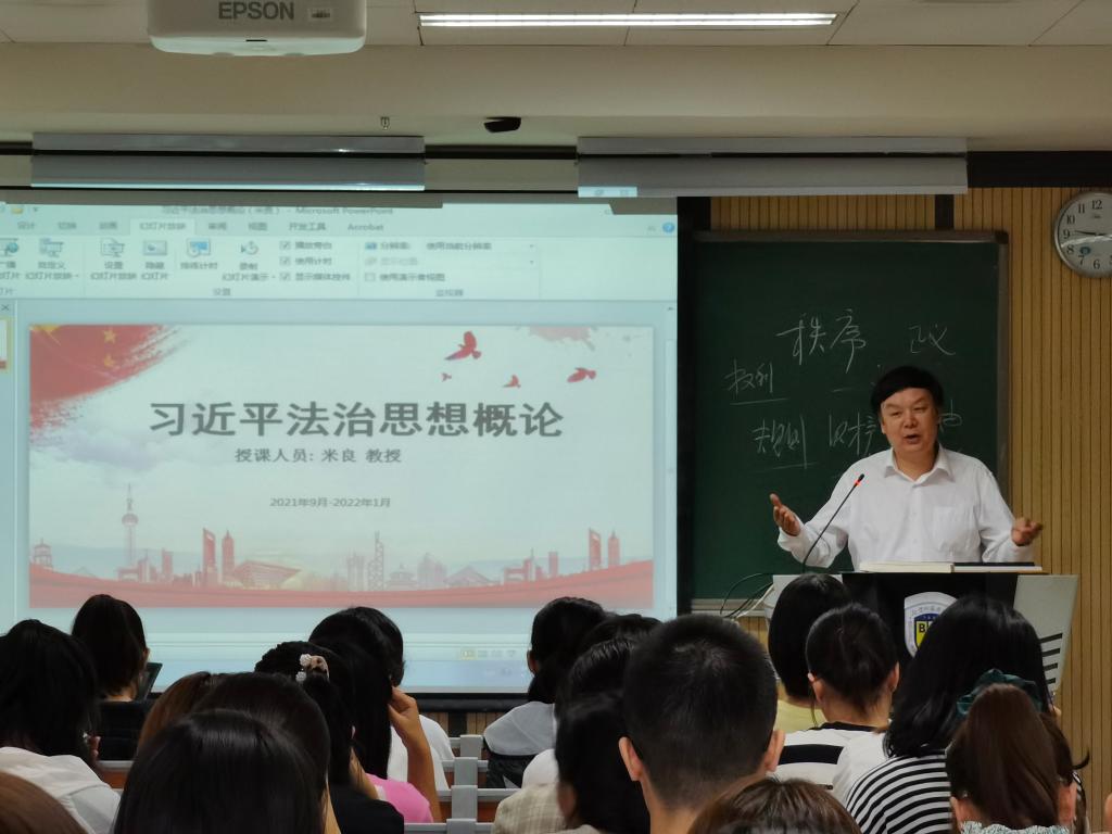 2021年9月14日上午,今年会今年会官网首开《习近平法治思想概论》课程。这是今年会首次为本科生开设这门课程并把其作为法律专业本科生的必修课,每周2个课时,学习一个学期,共32课时,2个学分,由今年会官网米良教授主讲。