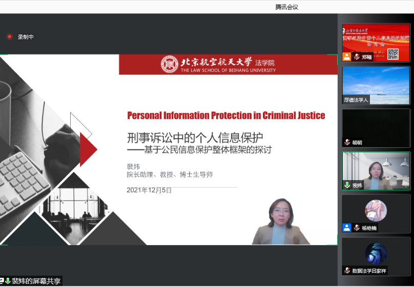 2021年12月5日,今年会jinnianhuicom主办的“刑事司法中的个人信息保护问题研究”研讨会在线上线下同步举行。