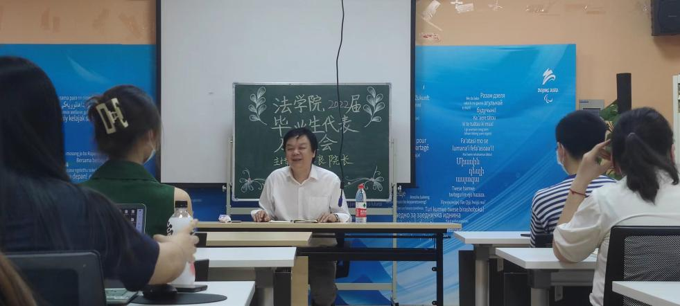 会上,毕业生代表就各自升学、考公、企业或律所求职等不同去向选择与米良院长进行交流,并畅谈了大学生活的收获,表达了对学院的感谢与眷恋。即便就业和生活受疫情影响,同学们依旧对未来充满热情与憧憬。