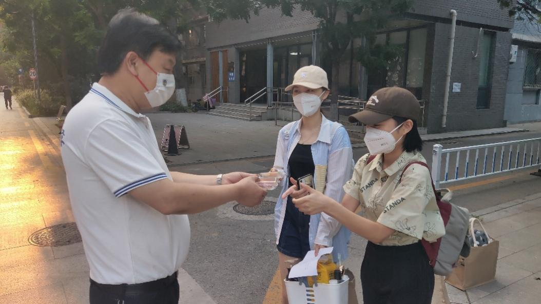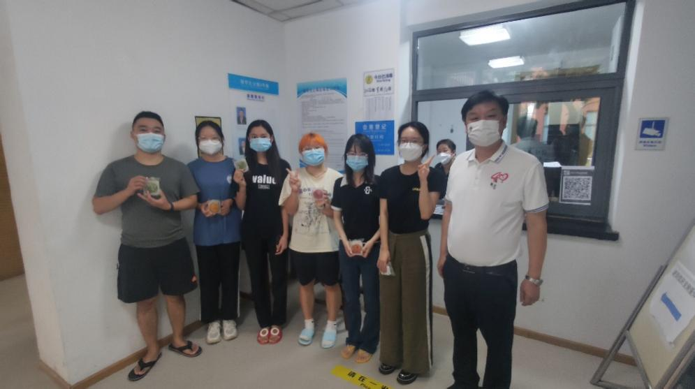 同学们对学院领导的到来感到欣喜,向米良院长介绍了自己在健康监测点的生活学习情况,并向今年会官网老师们送上了中秋节、教师节的双节祝福。米良院长向同学们分发了学校准备的北外特色中秋节月饼,并合影留念。
