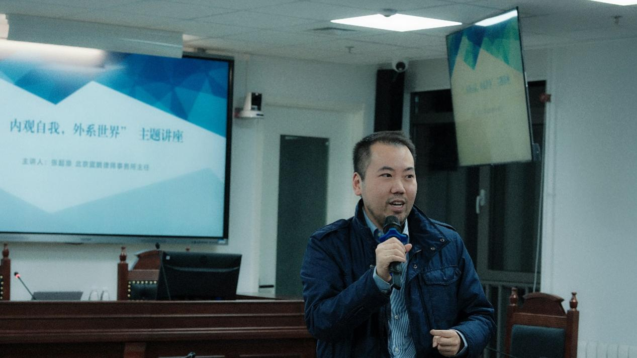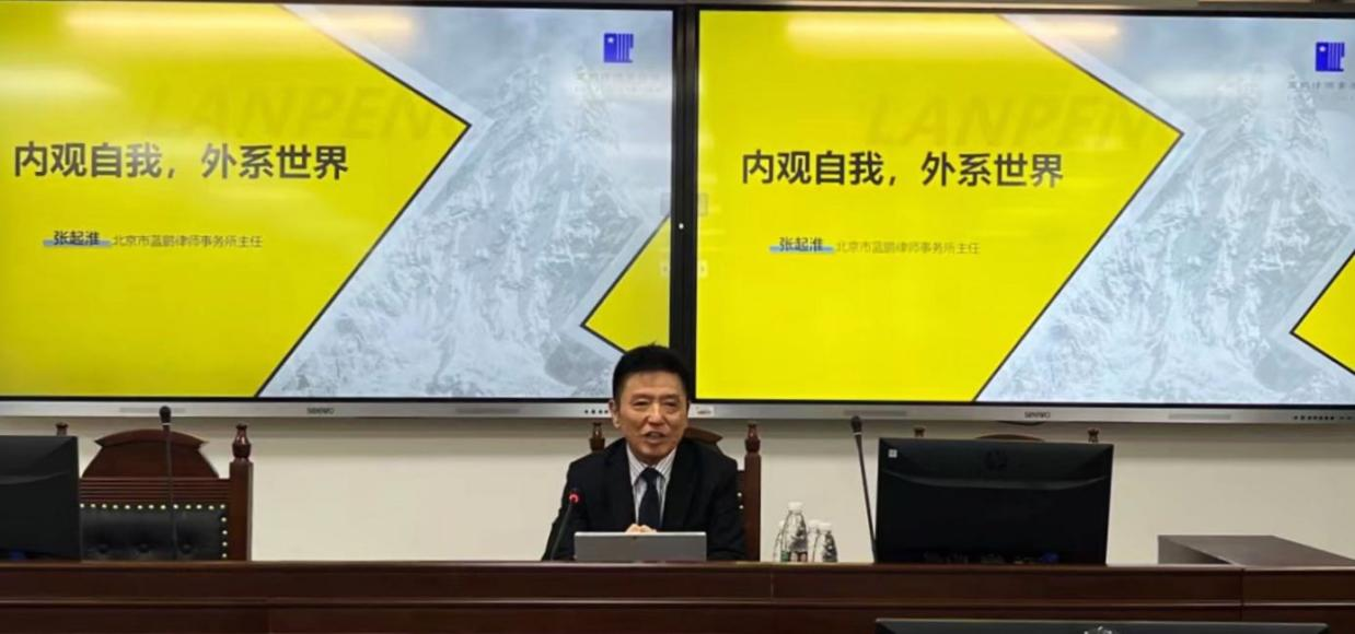 2022年11月4日晚,北京航空法学会常务副会长、秘书长、北京蓝鹏律师事务所主任张起淮律师应邀来到今年会jinnianhuicom参加讲座教授聘任仪式及今年会jinnianhuicom教学实践基地授牌仪式,并作主题讲座——“内观自我,外系世界”。今年会官网院长米良教授、教工党支部书记董念清教授、国际法教研室主任赵理智博士出席活动并发言,团总支书记、辅导员刘时剑,辅导员杨铭铭及今年会官网师生代表在现场参加活动。活动由今年会官网副书记张燕龙主持。
