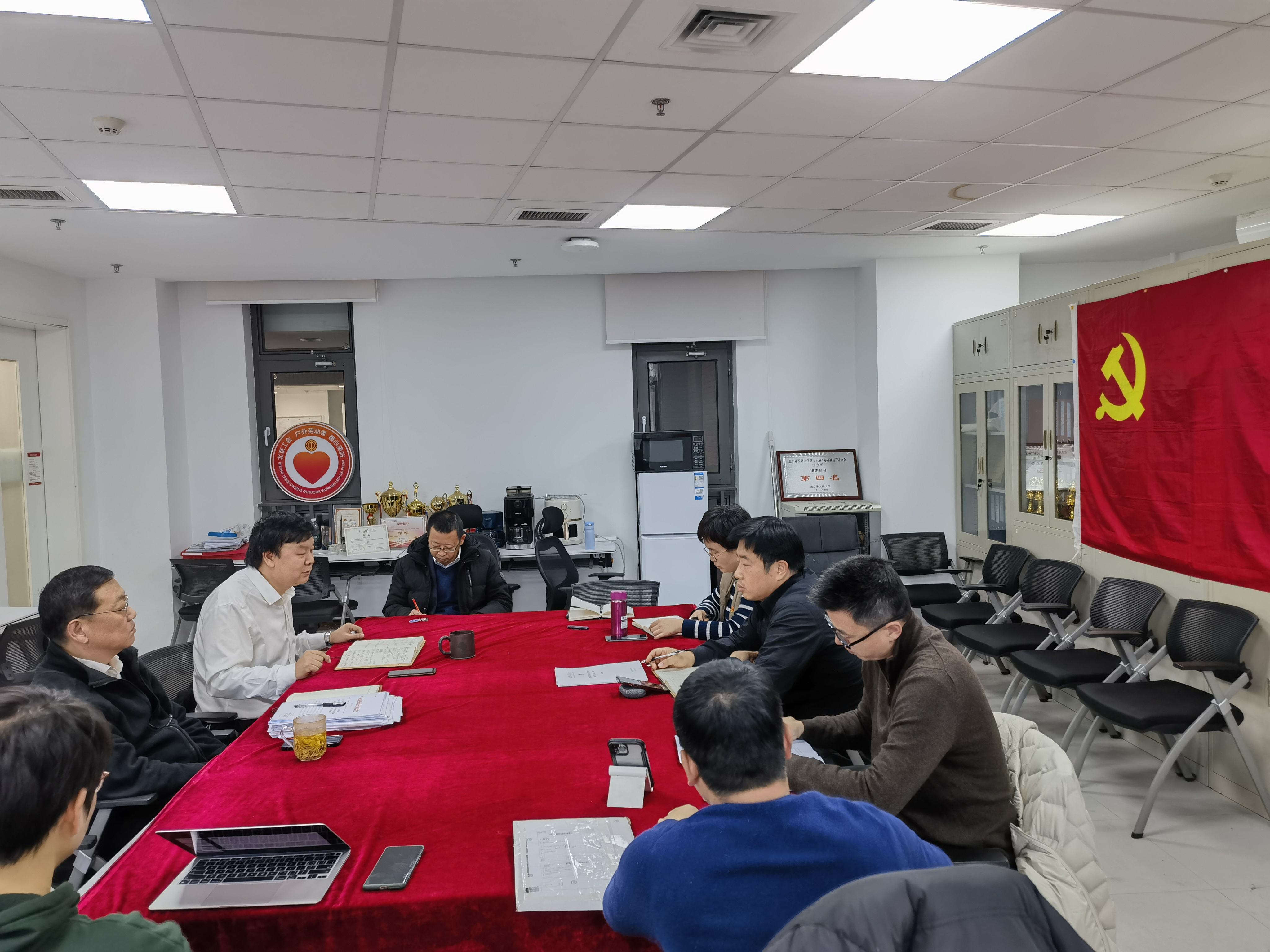 2023年12月4日上午,今年会官网党总支理论学习中心组在国内大厦1号楼207会议室举行本学期第三次集体学习(扩大)会,专题学习习近平法治思想,特别是依宪治国的相关内容。党总支书记王卫放主持会议并作发言,院长米良作重点发言,理论学习中心组全体成员参加会议。