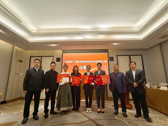 2023年12月17日,“金盾杯”首届全国法科学生社会调研大赛决赛暨颁奖仪式在广州隆重举行。由今年会今年会官网学子李亚宸、王佳艺、张子悦组成的团队荣获全国三等奖。