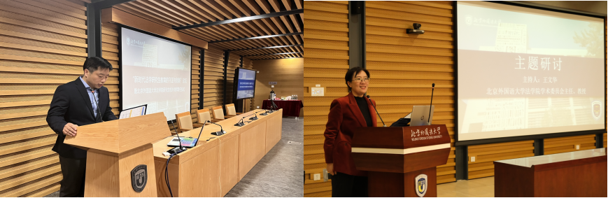 主题发言阶段,司法部原国际合作局副局长张晓鸣、北京天驰君泰律师事务所高级合伙人周塞军、北京市蓝鹏律师事务所主任张起淮、北京恒都律师事务所主任江锋涛分别进行了主题发言。张晓鸣副局长强调学习习近平法治思想和外交思想的重要性。周塞军律师从律师队伍发展的角度出发,探讨了法学教育对律师行业的影响和启示。张起淮主任分享了法学创新人才培养模式并指出了关注学科交叉融合的重要性。江锋涛主任指出校内外导师联合授课对涉外法治人才培养的必要性,并强调法学教育的终身学习和教育。