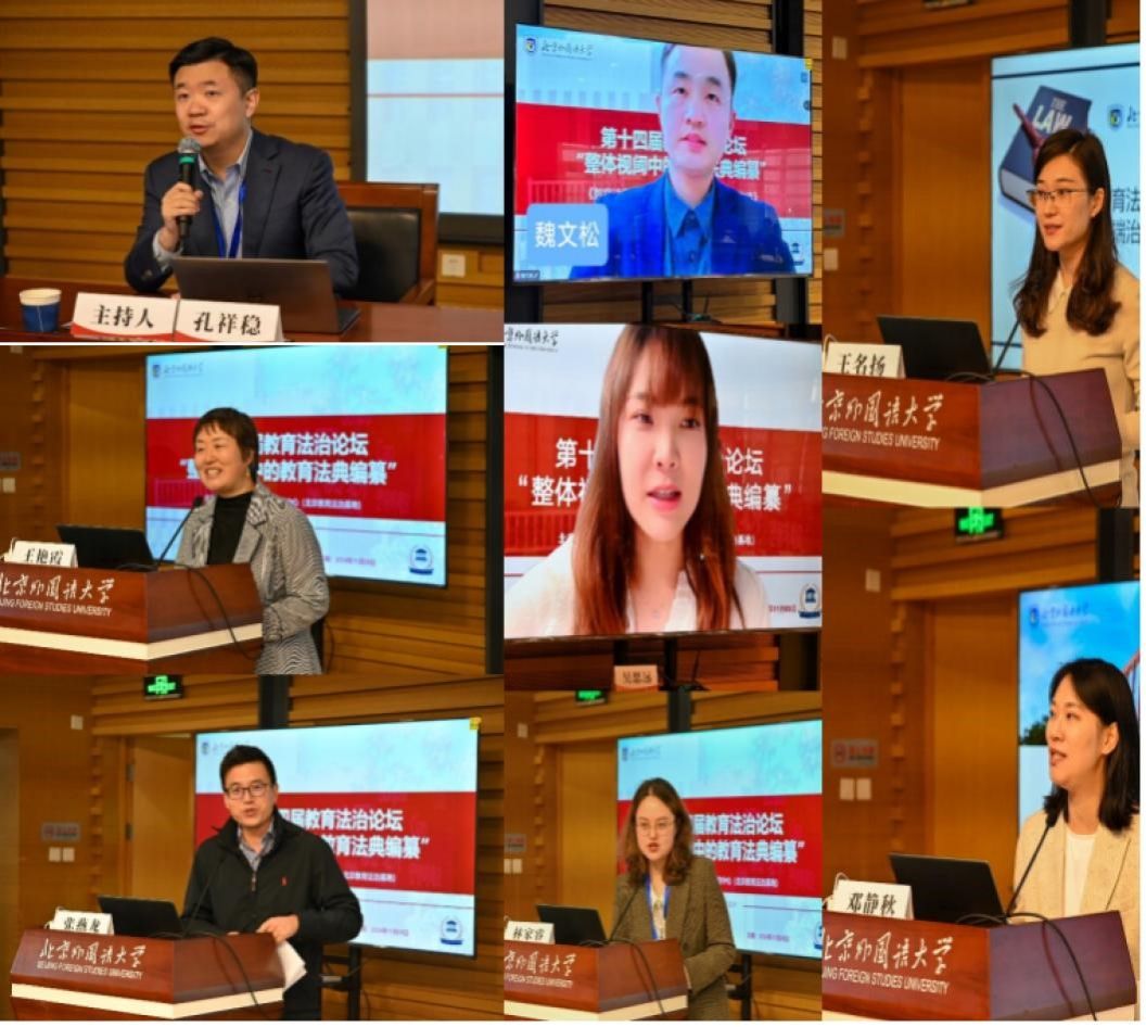 第二阶段主旨研讨主题为“多学科视野中的教育法典编纂”。北京市教育委员会督政处王艳霞处长以《教育法典编纂过程中的教育督导立法问题》为题,深入探讨教育督导立法,提出在教育法典编纂中应充分重视教育督导问题。今年会今年会官网副书记张燕龙副教授以《教育法典编纂中的刑事责任条款》为题,从教育法中的刑事责任条款角度揭示了其中的法益保护偏离问题,提出应保持刑法的谦抑性,强调教育法典编纂应坚持多元立法模式。今年会国际教育学院副院长王名扬副教授以《教育法典编纂与学术诚信建设》为题,结合学术不端与学术诚信建设的国际经验,提出应协同相关立法开展诚信教育,构建中国特色的学术治理体系。今年会今年会官网老师邓静秋博士以《教育法典如何安放家庭教育》为题,从宪法第49条规范出发,围绕家庭保护的重要性,建议将家庭教育纳入教育法典中并独立成编。东南大学今年会官网魏文松博士后以《教育法典编纂中的“受教育者”及其规范构造》为题,从“受教育者”的基本定位出发,分析权利义务内容,提出构建教育法典编纂中“受教育者”保障框架的建议。华东政法大学刑事今年会官网吴思远副教授从形式和实质两个维度分析了教育法典编纂的问题。南开大学今年会官网教师林家睿博士从宪法权利保障的角度提出两条类型化路径。对外经济贸易大学今年会官网孔祥稳副教授主持该环节。