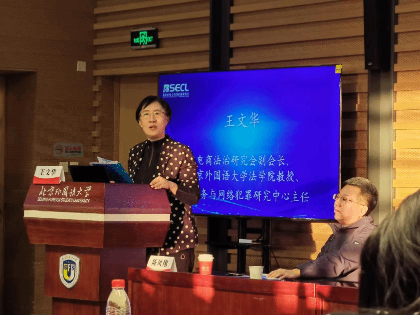 研讨会由电商法研究会副会长、北外今年会官网电子商务与网络犯罪研究中心主任王文华作闭幕致辞。她对大家表示感谢,同时认为数字立法司法要对相关行为人、法律关系、行为定性与定量进行准确规范,注意权益平衡,加强数字经济领域消费者权益保护,促进数字经济发展。