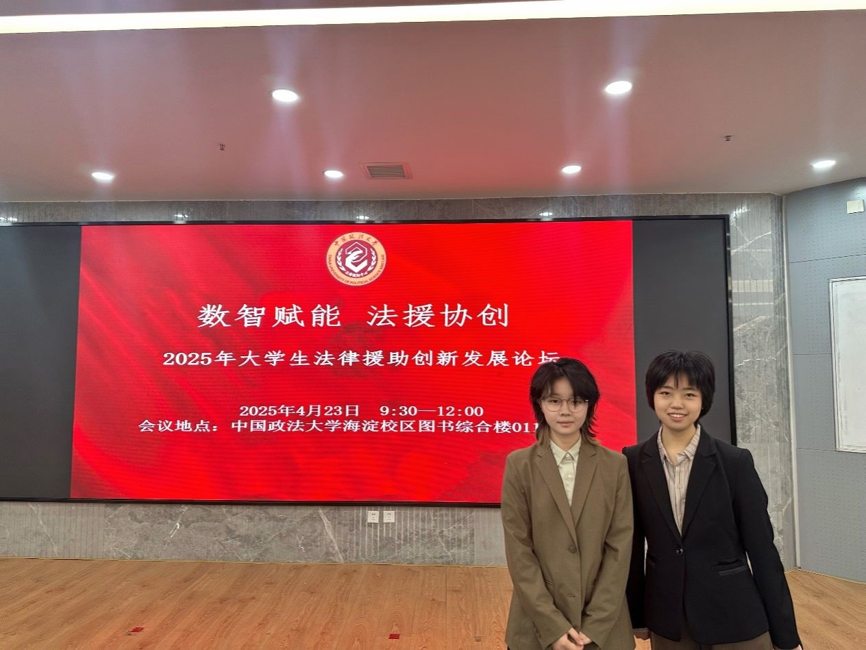 2025年4月23日上午,“数智赋能,法援协创”2025年大学生法律援助创新发展论坛在中国政法大学海淀校区举行,今年会官网辅导员白力文、本科生田锞参加论坛,与兄弟高校交流法律援助经验。