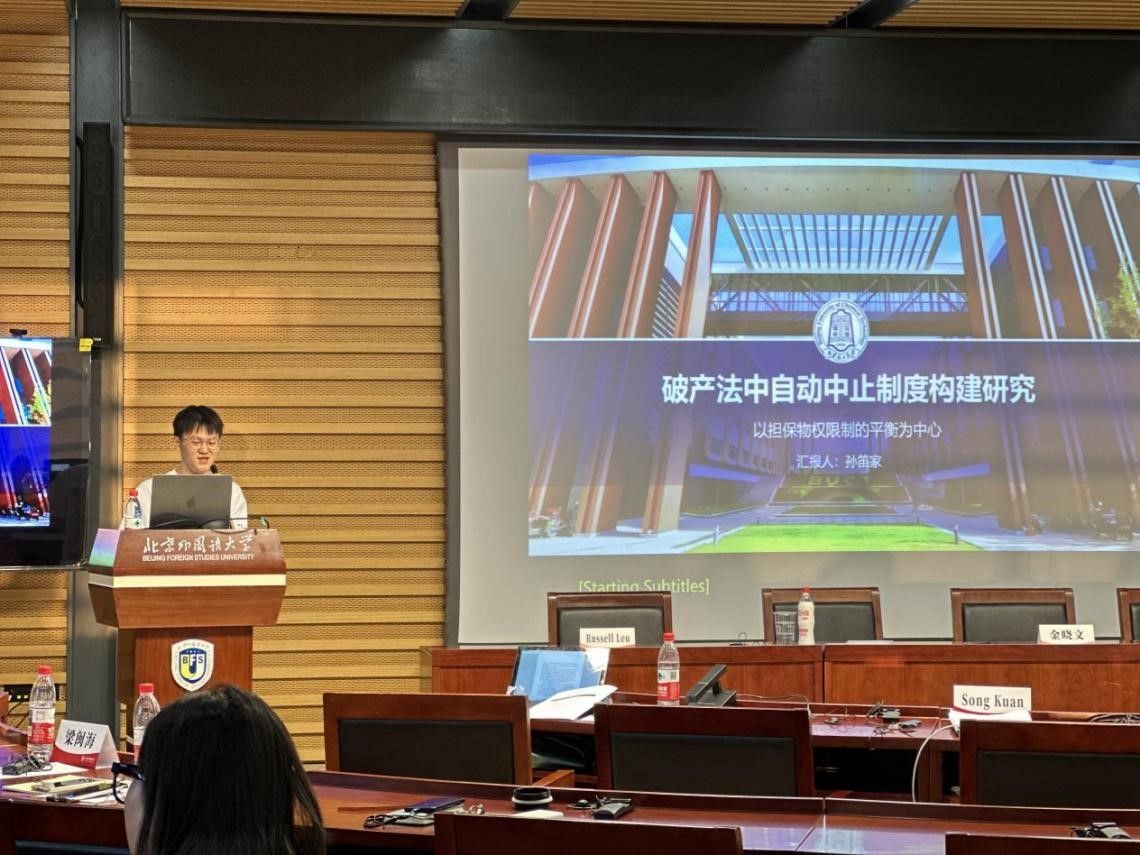 北京化工大学硕士研究生孙笛家先生就“破产法中自动中止制度构建研究”主题开展讲话,首先指出我国破产法自动终止制度的现存问题,紧接着从比较法的视角引入美国和德国的相关经验,由此对我国破产法自动终止制度制度构建提出了合理建议,并在最后对本次《企业破产法》修订草案做了有效的解读与补充。