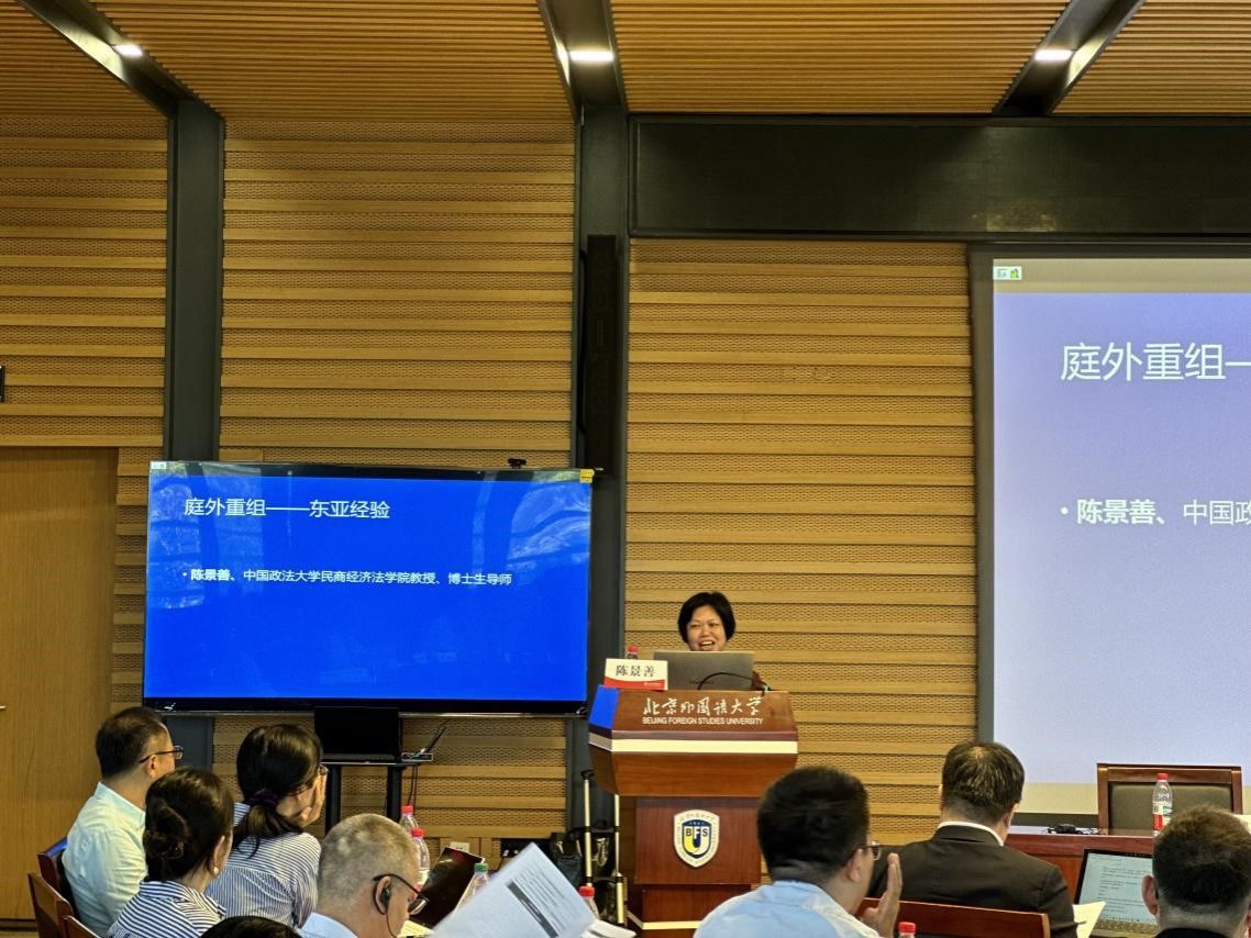 中国政法大学教授、《政法论坛》副总编陈景善女士基于其对东亚比较法的研究,从比较法的视角,先总地介绍了庭外重组的定义与调整范围等核心特征,再具体、重点地介绍了日韩两国为解决庭外重组中的核心难题所采取的法律策略,其核心在于通过立法赋能、多数决定原则、强有力的政府推动和配套融资机构,最后总结指出东亚庭外重组制度经验对于中国破产法立法修订的宝贵启示与建议。