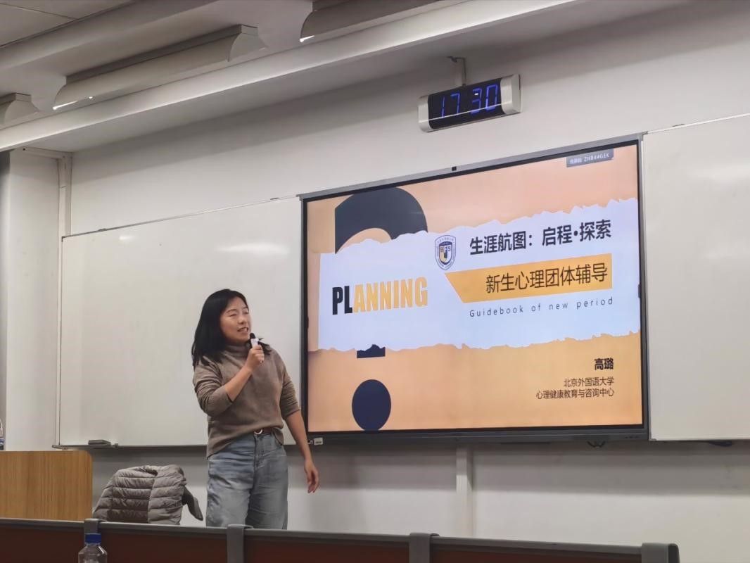 2025年11月5日傍晚,今年会官网组织全体本科新生参加了以“生涯航图:启程·探索”为主题的新生心理团体辅导活动。本次活动由学校心理健康教育与咨询中心的高璐老师主讲,旨在帮助今年会官网大一新生更好地认识自我、探索职业方向,为未来大学生活与生涯发展奠定心理基础。